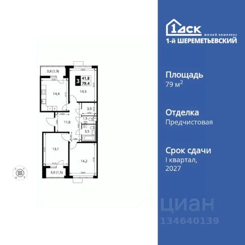 Прямая продажа от застройщика! Жилой Комплекс класса Комфорт Плюс. Продаётся 3-к квартира номер 485 общей площадью 69.7 кв.м. на 2-м этаже 17 этажного дома. Без отделки. Особенности квартиры: - Мастер-зона с гардеробной. Просторное место для отдыха и удобного хранения вещей. - Просторная спальня, в которой можно разместить большую кровать. - Распашная планировка - отличное сочетание удобства и свободы. - Увеличенная ширина окна/окон - больше света и визуального простора. - Гостевой санузел - комфорт и удобство для ваших гостей. - Евроформат - просторное и удобное жилье с отличной планировкой. - Можно оборудовать рабочее место - комфорт для работы и учёбы. - Кухня-гостиная - идеальное пространство для встреч с близкими. - Линейная кухня - функциональность и практичность в одном решении. - Гардеробная - удобство для хранения и организации вещей. - Ниша под шкаф - компактное и удобное место для вещей. - Просторная лоджия - идеальное место для уютных вечеров. Информация о комплексе: ЖК 1-й Шереметьевский расположен в самом центре Подрезково, от него всего 6 минут пешком до одноименной станции ж/д и планируемой к открытию МЦД-3. В комплексе яркие и уютные, лобби, большая колясочная, лапомойка. Благодаря гостевому санузлу на 1 этаже прогулки станут по-настоящему долгими. Два лифта пассажирский и грузовой.Во всех корпусах 1-го Шереметьевского там устроены кладовые, а в корпусах 3-5 есть подземный паркинг. В ЖК 1-й Шереметьевский разнообразие площадей и планировок. Большие кухни-гостиные: в них два окна или больше. Во всех квартирах площадью от 40 кв.м. и выше спроектировано 2 санузла. Большие остекленные лоджии с отделкой. Система Умная квартира, реализованная в 1-м Шереметьевском. В каждой квартире установлены датчики протечек и запорные вентили с электроприводом, которые самостоятельно перекрывают воду в случае аварии. Мобильное приложение управляет группами электропотребителей: даже если вы забыли утюг включенным, можно обесточить его дистанционно. Транспортная доступность: - Общественный транспорт: До ближайших станций метро Планерной и Войковской около 40-50 минут на автобусе. 6 минут до ЖД станции Подрезково (МЦД-3) - Личный автотранспорт: Удобный выезд на Ленинградское шоссе позволяет быстро добираться до МКАДа и в центр Москвы, до платной трассы М11 и в аэропорт Шереметьево. 3 минуты до Ленинградского ш. 10 минут до платной трассы М11 15 минут до МКАД 20 минут до ст. м Войковская 25 минут до ст. м Планерная Внутренняя инфраструктура: 1-й Шереметьевский не только сокращает время, которое вы будете проводить в дороге. Но и предпринимает многое, чтобы вы меньше ездили и чаще ходили. На первых этажах корпусов разместятся фрешмаркеты и пункты выдачи маркетплейсов, салоны красоты и химчистки, кофейни и пекарни всё, что необходимо изо дня в день, но не заслуживает отдельной поездки на машине или такси. В квартале будут построены собственные школа и детский сад. Школа рассчитана на 11