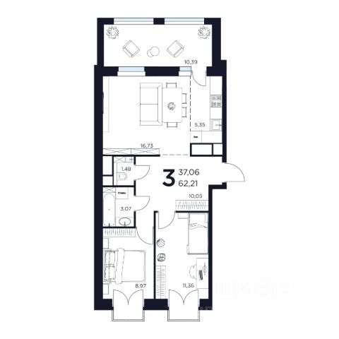 В объявлении указан метраж 64 кв.м: с учётом полного размера лоджии.