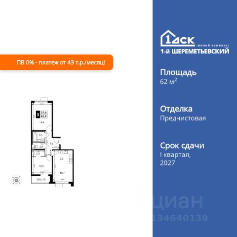 Продается трехкомнатная квартирав жилом комплексе комфорт класса "Химки Тайм" площадью 65.87 кв.м на 20 этаже 20 этажного дома. Квартира с полной отделкой, окна выходят во двор и на улицу. Прекрасный выбор для первой квартиры или инвестиций. Комфортные квартиры по комфортной цене! • Скидки на квартиры до 17% (стоимость квартиры в карточке указана с учетом скидки). • Семейная ипотека без дополнительных комиссий • IT ипотека без дополнительных комиссий • Квартиры "под ключ", сдаются с чистовой отделкой, в светлых и темных тонах на ваш выбор. • Точечная застройка с готовым ремонтом: выбирайте дом, где слышно птиц, а не стройку. Живите ДОМА, а не на стройплощадке. • Бесплатный наземный паркинг грамотное планирование потоков машин и пешеходов позволяют сделать дом удобным для всех. Не нужно переплачивать за подземный гараж. • Прекрасный выбор для первой квартиры или инвестиций. В 20252027 недалеко будет запущен Индустриальный парк "Молжаниново" технологичный объект, который станет еще одним катализатором развития района, предоставит рабочие места высококвалифицированным специалистам и подстегнёт спрос на покупку и аренду квартир. Успейте вложиться по выгодной цене. До центра Москвы на учебу, работу и по любому поводу — это быстро! • 5 мин пешком до скоростной линии МЦД-3 "Молжаниново". • От 30 мин на автобусе или маршрутке до ст.м. "Сходненская", "Речной вокзал". Остановка общественного транспорта "Филино" около ЖК. • На автомобиле удобный выезд на Ленинградское шоссе: до центра Москвы — 40 минут, до международного аэропорта Шереметьево — 20 минут. В состав чистовой отделки входит всё, что нужно для комфорта. Вкладывайте в себя и в детей, а не в ремонт! • Выравнивание полов, стен и потолков • Покрытие полов ламинатом • Поклейка обоев • Монтаж натяжных потолков с установкой светильников • Установка межкомнатных дверей • Установка радиаторов отопления • Выкладывание плиточного "фартука" на кухне • Установка водопроводных и канализационных труб в "мокрой зоне" на кухне • Укладывание плитки в ванной комнате • Установка сантехники • Установка счетчиков • Разводка электросети • Монтаж розеток, выключателей Архитектура на многие десятилетия! • Дома строятся по монолитной технологии с вентилируемыми фасадами. В квартирах будет комфортный микроклимат в любой сезон, а корпуса сохранят достойный внешний вид в течение долгого времени. • В каждом корпусе один подъезд и 3 лифта это не человейник. • В каждом подъезде есть отдельная комната для хранения спортивного оборудования. Инфраструктура на территории качественный дом с понятной "начинкой". • На первых этажах расположатся магазины, салоны красоты и кафе • Внутри ЖК будет муниципальный детский сад • 2 спортивные площадки • 2 площадки для отдыха взрослого населения • 4 детские игровые площадки Собственный паркинг ваша машина около вашего дома. • В ЖК своя бесплатная наземная автостоянка на 210 машиномест Окружение выбирайте ЖК Продается 3-комнатная квартира от застройщика в Химках.