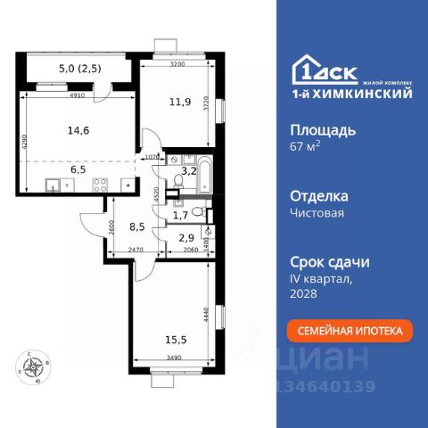Прямая продажа от застройщика! Жилой Комплекс класса Комфорт. Продаётся 3-к квартира номер 293 общей площадью 74.8 кв.м. на 6-м этаже 6 этажного здания. Предчистовая отделка. Цена с учётом скидки. Особенности квартиры: - Организуем показ в удобное для вас время! - Мастер-зона с гардеробной. Просторное место для отдыха и удобного хранения вещей. - Распашная планировка - отличное сочетание удобства и свободы. - Раздельный санузел - больше удобства для всех членов семьи. - Увеличенная высота потолков - ощущение простора и легкости. - Линейная кухня - функциональность и практичность в одном решении. - Гардеробная - удобство для хранения и организации вещей. - Ниша под шкаф - компактное и удобное место для вещей. - Лоджия - уютное место для отдыха и тишины. Квартира с предчистовой отделкой. Вам не придется заниматься черновыми и трудоёмкими работы, а чистовую отделку и дизайн - сделайте на свой вкус. Информация о комплексе: "1-й Химкинский": гармония современного города и природы на 102 га у Химкинского леса и канала им. Москвы. Развитая инфраструктура: ТЦ, школы, спорткомплекс с термами и СПА, парк развлечений. Идеальный баланс для жизни в окружении зелени и городского комфорта. Транспортная доступность: ЖК "1-й Химкинский" дает возможность выбрать любой способ передвижения как до города, так и до самых разных объектов, которые могут представлять интерес для его жителей. Не важно, какой способ передвижения вы предпочитаете, успевать всегда и везде можно вне зависимости от выбора транспорта. - 8 мин. пешком (800 м) до остановки "Золотая Арка" -10 мин пешком (1 км) до остановки "Поворот на Ивакино" Внутренняя инфраструктура: Безопасность: закрытые дворы без машин, безбарьерная среда, сквозные подъезды, камеры на детских площадках с трансляцией на смартфон. Отдых: семейный парк развлечений, двухэтажный ТЦ 8 000 м² с фудкортом. Образование: 4 детских сада, 2 муниципальные школы. Спорт: закольцованный веломаршрут, спорткомплекс с термами, тренажерный зал, воркаут зоны. Инфраструктура: поликлиника со станцией скорой помощи, пожарное депо. Паркинг: подземный паркинг, кладовые на -1 этаже, СТО и автомойка на территории. Квартира с предчистовой отделкой - ваш дизайн без черновых работ