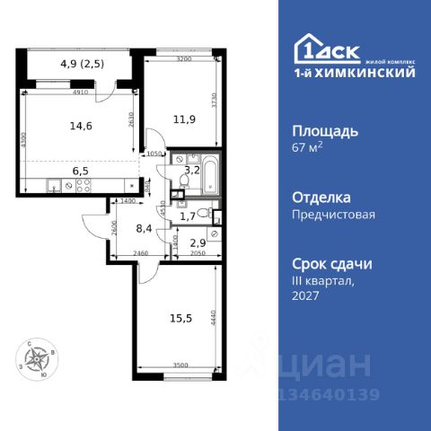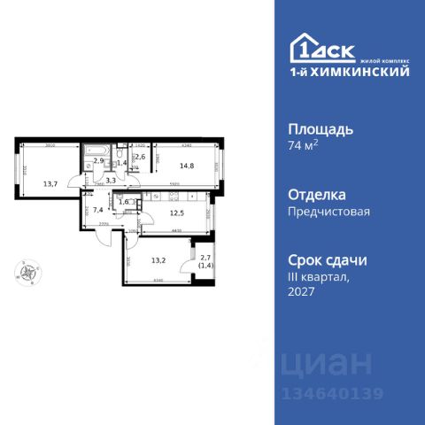 Прямая продажа от застройщика! Жилой Комплекс класса Комфорт. Продаётся 3-к квартира номер 563 общей площадью 67.2 кв.м. на 2-м этаже 16 этажного дома. Отделка Whitebox. Цена с учётом скидки! Особенности квартиры: - Просторная спальня, в которой можно разместить большую кровать. - Распашная планировка - отличное сочетание удобства и свободы. - Гостевой санузел - комфорт и удобство для ваших гостей. - Евроформат - просторное и удобное жилье с отличной планировкой. - Гардеробная - удобство для хранения и организации вещей. - Просторная лоджия - идеальное место для уютных вечеров. Квартира с предчистовой отделкой (White box). Вам не придется заниматься черновыми и трудоёмкими работы, а чистовую отделку и дизайн - сделайте на свой вкус. Информация о комплексе: Квартал класса комфорт плюс, где современное городское пространство граничит с удивительной природой вокруг. 1-й Химкинский расположен на территории в 102 га и органично вписан в природное окружение Химкинского леса и канала им. Москвы. В проекте предусмотрена богатая коммерческая инфраструктура с собственным торговым центром, общеобразовательные учреждения и социальные объекты. Изюминкой жилого комплекса будут спортивно-оздоровительный комплекс с термами и SPA и семейный парк развлечений. Транспортная доступность: ЖК "1-й Химкинский" дает возможность выбрать любой способ передвижения как до города, так и до самых разных объектов, которые могут представлять интерес для его жителей. Не важно, какой способ передвижения вы предпочитаете, успевать всегда и везде можно вне зависимости от выбора транспорта. - 8 мин. пешком (800 м) до остановки "Золотая Арка" -10 мин пешком (1 км) до остановки "Поворот на Ивакино" Внутренняя инфраструктура: - Безопасность: закрытые дворы без машин, безбарьерная среда и сквозные подъезды, камеры на детских площадках с возможностью трансляции на смартфоне - Идеальный отдых в кругу семьи: семейный парк развлечений на территории, торговый центр (2-х этажный) общей площадью более 8 тыс. кв. м с фудкортом - Образование: 3 детских сада и современная муниципальная школа на 2450 мест - Спортивная среда: закольцованный веломаршрут с навигацией, спортивный комплекс с термами, закрытый тренажерный зал и зоны ворк-аута - Социальные объекты: поликлиника со станцией скорой помощи, пожарное депо - Подземный паркинг и кладовые помещения на -1 этаже, станция техобслуживания и автомойка на территории