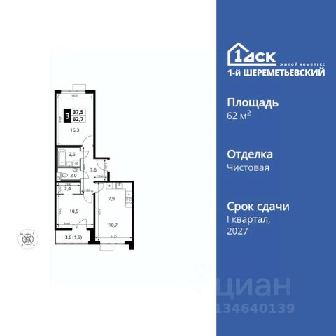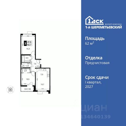 УСПЕЙ ПО СЕМЕЙНОЙ ИПОТЕКЕ БЕЗ НАЦЕНКИ! Квартиры в готовом квартале от 30 000 рублей в месяц! Прямая продажа от застройщика! Жилой Комплекс класса Комфорт Плюс. Продаётся 3-к квартира номер 1056 общей площадью 76.9 кв.м. на 16-м этаже 16 этажного здания. Отделка Whitebox. Цена с учётом скидки. Особенности квартиры: - Мастер-зона с гардеробной. Просторное место для отдыха и удобного хранения вещей. - Просторная спальня, в которой можно разместить большую кровать. - Распашная планировка - отличное сочетание удобства и свободы. - Увеличенная ширина окна/окон - больше света и визуального простора. - Гостевой санузел - комфорт и удобство для ваших гостей. - Место для игры/занятия спортом - идеальное пространство для активных детей. - Увеличенная высота потолков - ощущение простора и легкости. - Можно оборудовать 2 или более рабочих места - пространство для нескольких человек. - Можно оборудовать рабочее место - комфорт для работы и учёбы. - Линейная кухня - функциональность и практичность в одном решении. - Гардеробная - удобство для хранения и организации вещей. - Лоджия - уютное место для отдыха и тишины. Квартира с предчистовой отделкой (White box). Вам не придется заниматься черновыми и трудоёмкими работы, а чистовую отделку и дизайн - сделайте на свой вкус. Информация о комплексе: ЖК 1-й Шереметьевский расположен в самом центре Подрезково, от него всего 6 минут пешком до одноименной станции ж/д и планируемой к открытию МЦД-3. В комплексе яркие и уютные, лобби, большая колясочная, лапомойка. Благодаря гостевому санузлу на 1 этаже прогулки станут по-настоящему долгими. Два лифта пассажирский и грузовой.Во всех корпусах 1-го Шереметьевского там устроены кладовые, а в корпусах 3-5 есть подземный паркинг. В ЖК 1-й Шереметьевский разнообразие площадей и планировок. Большие кухни-гостиные: в них два окна или больше. Во всех квартирах площадью от 40 кв.м. и выше спроектировано 2 санузла. Большие остекленные лоджии с отделкой. Система Умная квартира, реализованная в 1-м Шереметьевском. В каждой квартире установлены датчики протечек и запорные вентили с электроприводом, которые самостоятельно перекрывают воду в случае аварии. Мобильное приложение управляет группами электропотребителей: даже если вы забыли утюг включенным, можно обесточить его дистанционно. Транспортная доступность: - Общественный транспорт: До ближайших станций метро Планерной и Войковской около 40-50 минут на автобусе. 6 минут до ЖД станции Подрезково (МЦД-3) - Личный автотранспорт: Удобный выезд на Ленинградское шоссе позволяет быстро добираться до МКАДа и в центр Москвы, до платной трассы М11 и в аэропорт Шереметьево. 3 минуты до Ленинградского ш. 10 минут до платной трассы М11 15 минут до МКАД 20 минут до ст. м Войковская 25 минут до ст. м Планерная Внутренняя инфраструктура: 1-й Шереметьевский не только сокращает время, которое вы будете проводить в дороге. Но и предпринимает многое, чтобы вы меньше ездили и чаще хо