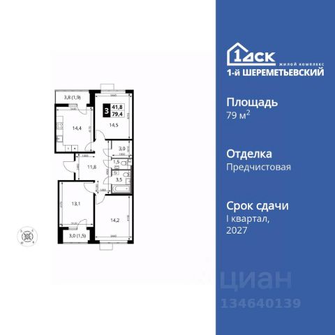 УСПЕЙ ПО СЕМЕЙНОЙ ИПОТЕКЕ БЕЗ НАЦЕНКИ! Квартиры в готовом квартале от 30 000 рублей в месяц! Прямая продажа от застройщика! Жилой Комплекс класса Комфорт Плюс. Продаётся 3-к квартира номер 464 общей площадью 79.4 кв.м. на 16-м этаже 16 этажного здания. Отделка Whitebox. Цена с учётом скидки. Особенности квартиры: - Просторная спальня, в которой можно разместить большую кровать. - Распашная планировка - отличное сочетание удобства и свободы. - Увеличенная ширина окна/окон - больше света и визуального простора. - Гостевой санузел - комфорт и удобство для ваших гостей. - Увеличенная высота потолков - ощущение простора и легкости. - Можно оборудовать 2 или более рабочих места - пространство для нескольких человек. - Линейная кухня - функциональность и практичность в одном решении. - Гардеробная - удобство для хранения и организации вещей. - Лоджия - уютное место для отдыха и тишины. Квартира с предчистовой отделкой (White box). Вам не придется заниматься черновыми и трудоёмкими работы, а чистовую отделку и дизайн - сделайте на свой вкус. Информация о комплексе: ЖК 1-й Шереметьевский расположен в самом центре Подрезково, от него всего 6 минут пешком до одноименной станции ж/д и планируемой к открытию МЦД-3. В комплексе яркие и уютные, лобби, большая колясочная, лапомойка. Благодаря гостевому санузлу на 1 этаже прогулки станут по-настоящему долгими. Два лифта пассажирский и грузовой.Во всех корпусах 1-го Шереметьевского там устроены кладовые, а в корпусах 3-5 есть подземный паркинг. В ЖК 1-й Шереметьевский разнообразие площадей и планировок. Большие кухни-гостиные: в них два окна или больше. Во всех квартирах площадью от 40 кв.м. и выше спроектировано 2 санузла. Большие остекленные лоджии с отделкой. Система Умная квартира, реализованная в 1-м Шереметьевском. В каждой квартире установлены датчики протечек и запорные вентили с электроприводом, которые самостоятельно перекрывают воду в случае аварии. Мобильное приложение управляет группами электропотребителей: даже если вы забыли утюг включенным, можно обесточить его дистанционно. Транспортная доступность: - Общественный транспорт: До ближайших станций метро Планерной и Войковской около 40-50 минут на автобусе. 6 минут до ЖД станции Подрезково (МЦД-3) - Личный автотранспорт: Удобный выезд на Ленинградское шоссе позволяет быстро добираться до МКАДа и в центр Москвы, до платной трассы М11 и в аэропорт Шереметьево. 3 минуты до Ленинградского ш. 10 минут до платной трассы М11 15 минут до МКАД 20 минут до ст. м Войковская 25 минут до ст. м Планерная Внутренняя инфраструктура: 1-й Шереметьевский не только сокращает время, которое вы будете проводить в дороге. Но и предпринимает многое, чтобы вы меньше ездили и чаще ходили. На первых этажах корпусов разместятся фрешмаркеты и пункты выдачи маркетплейсов, салоны красоты и химчистки, кофейни и пекарни всё, что необходимо изо дня в день, но не заслуживает отдельной поездки на машине или такси. В