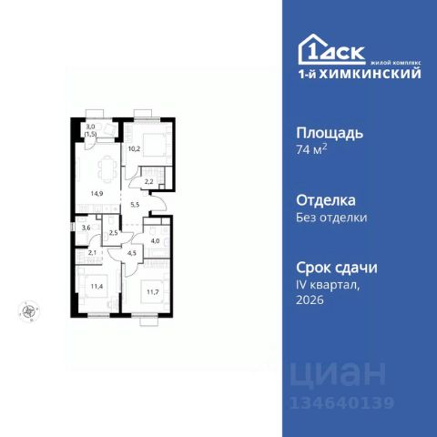 Прямая продажа от застройщика! Жилой Комплекс класса Комфорт. Продаётся 3-к квартира номер 68 общей площадью 74.1 кв.м. на 10-м этаже 17 этажного здания. Без отделки. Особенности квартиры: - Мастер-зона с санузлом и гардеробной. Всё для вашего комфорта и удобства, включая личный санузел и гардероб. - Распашная планировка - отличное сочетание удобства и свободы. - Окно в ванной - натуральное освещение для уюта и комфорта. - Душ помимо ванной - дополнительное удобство для вашей семьи. - Просторная кухня - место для семейных ужинов и кулинарных экспериментов. - Гардеробная - удобство для хранения и организации вещей. - Лоджия - уютное место для отдыха и тишины. Информация о комплексе: Квартал класса комфорт плюс, где современное городское пространство граничит с удивительной природой вокруг. 1-й Химкинский расположен на территории в 102 га и органично вписан в природное окружение Химкинского леса и канала им. Москвы. В проекте предусмотрена богатая коммерческая инфраструктура с собственным торговым центром, общеобразовательные учреждения и социальные объекты. Изюминкой жилого комплекса будут спортивно-оздоровительный комплекс с термами и SPA и семейный парк развлечений. Транспортная доступность: ЖК "1-й Химкинский" дает возможность выбрать любой способ передвижения как до города, так и до самых разных объектов, которые могут представлять интерес для его жителей. Не важно, какой способ передвижения вы предпочитаете, успевать всегда и везде можно вне зависимости от выбора транспорта. - 8 мин. пешком (800 м) до остановки "Золотая Арка" -10 мин пешком (1 км) до остановки "Поворот на Ивакино" Внутренняя инфраструктура: - Безопасность: закрытые дворы без машин, безбарьерная среда и сквозные подъезды, камеры на детских площадках с возможностью трансляции на смартфоне - Идеальный отдых в кругу семьи: семейный парк развлечений на территории, торговый центр (2-х этажный) общей площадью более 8 тыс. кв. м с фудкортом - Образование: 3 детских сада и современная муниципальная школа на 2450 мест - Спортивная среда: закольцованный веломаршрут с навигацией, спортивный комплекс с термами, закрытый тренажерный зал и зоны ворк-аута - Социальные объекты: поликлиника со станцией скорой помощи, пожарное депо - Подземный паркинг и кладовые помещения на -1 этаже, станция техобслуживания и автомойка на территории