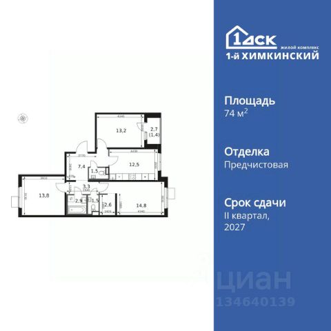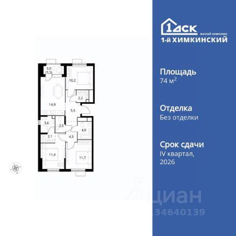 Прямая продажа от застройщика! Жилой Комплекс класса Комфорт. Продаётся 3-к квартира номер 68 общей площадью 74.1 кв.м. на 10-м этаже 17 этажного здания. Без отделки. Особенности квартиры: - Мастер-зона с санузлом и гардеробной. Всё для вашего комфорта и удобства, включая личный санузел и гардероб. - Распашная планировка - отличное сочетание удобства и свободы. - Окно в ванной - натуральное освещение для уюта и комфорта. - Душ помимо ванной - дополнительное удобство для вашей семьи. - Просторная кухня - место для семейных ужинов и кулинарных экспериментов. - Гардеробная - удобство для хранения и организации вещей. - Лоджия - уютное место для отдыха и тишины. Информация о комплексе: Квартал класса комфорт плюс, где современное городское пространство граничит с удивительной природой вокруг. 1-й Химкинский расположен на территории в 102 га и органично вписан в природное окружение Химкинского леса и канала им. Москвы. В проекте предусмотрена богатая коммерческая инфраструктура с собственным торговым центром, общеобразовательные учреждения и социальные объекты. Изюминкой жилого комплекса будут спортивно-оздоровительный комплекс с термами и SPA и семейный парк развлечений. Транспортная доступность: ЖК "1-й Химкинский" дает возможность выбрать любой способ передвижения как до города, так и до самых разных объектов, которые могут представлять интерес для его жителей. Не важно, какой способ передвижения вы предпочитаете, успевать всегда и везде можно вне зависимости от выбора транспорта. - 8 мин. пешком (800 м) до остановки "Золотая Арка" -10 мин пешком (1 км) до остановки "Поворот на Ивакино" Внутренняя инфраструктура: - Безопасность: закрытые дворы без машин, безбарьерная среда и сквозные подъезды, камеры на детских площадках с возможностью трансляции на смартфоне - Идеальный отдых в кругу семьи: семейный парк развлечений на территории, торговый центр (2-х этажный) общей площадью более 8 тыс. кв. м с фудкортом - Образование: 3 детских сада и современная муниципальная школа на 2450 мест - Спортивная среда: закольцованный веломаршрут с навигацией, спортивный комплекс с термами, закрытый тренажерный зал и зоны ворк-аута - Социальные объекты: поликлиника со станцией скорой помощи, пожарное депо - Подземный паркинг и кладовые помещения на -1 этаже, станция техобслуживания и автомойка на территории