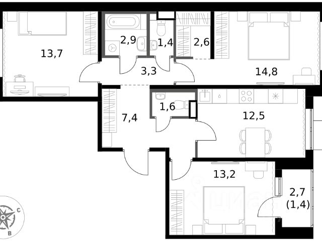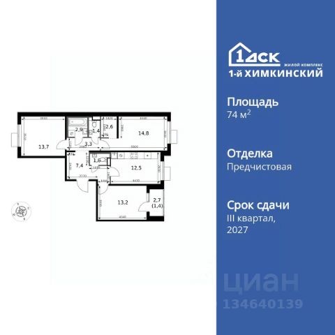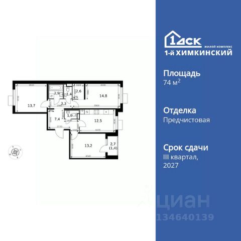Прямая продажа от застройщика! Жилой Комплекс класса Комфорт. Продаётся 3-к квартира номер 284 общей площадью 74.8 кв.м. на 5-м этаже 6 этажного здания. Отделка Whitebox. Цена с учётом скидки. Особенности квартиры: - Мастер-зона с гардеробной. Просторное место для отдыха и удобного хранения вещей. - Распашная планировка - отличное сочетание удобства и свободы. - Раздельный санузел - больше удобства для всех членов семьи. - Линейная кухня - функциональность и практичность в одном решении. - Гардеробная - удобство для хранения и организации вещей. - Ниша под шкаф - компактное и удобное место для вещей. - Лоджия - уютное место для отдыха и тишины. Квартира с предчистовой отделкой (White box). Вам не придется заниматься черновыми и трудоёмкими работы, а чистовую отделку и дизайн - сделайте на свой вкус. Информация о комплексе: Квартал класса комфорт плюс, где современное городское пространство граничит с удивительной природой вокруг. 1-й Химкинский расположен на территории в 102 га и органично вписан в природное окружение Химкинского леса и канала им. Москвы. В проекте предусмотрена богатая коммерческая инфраструктура с собственным торговым центром, общеобразовательные учреждения и социальные объекты. Изюминкой жилого комплекса будут спортивно-оздоровительный комплекс с термами и SPA и семейный парк развлечений. Транспортная доступность: ЖК "1-й Химкинский" дает возможность выбрать любой способ передвижения как до города, так и до самых разных объектов, которые могут представлять интерес для его жителей. Не важно, какой способ передвижения вы предпочитаете, успевать всегда и везде можно вне зависимости от выбора транспорта. - 8 мин. пешком (800 м) до остановки "Золотая Арка" -10 мин пешком (1 км) до остановки "Поворот на Ивакино" Внутренняя инфраструктура: - Безопасность: закрытые дворы без машин, безбарьерная среда и сквозные подъезды, камеры на детских площадках с возможностью трансляции на смартфоне - Идеальный отдых в кругу семьи: семейный парк развлечений на территории, торговый центр (2-х этажный) общей площадью более 8 тыс. кв. м с фудкортом - Образование: 3 детских сада и современная муниципальная школа на 2450 мест - Спортивная среда: закольцованный веломаршрут с навигацией, спортивный комплекс с термами, закрытый тренажерный зал и зоны ворк-аута - Социальные объекты: поликлиника со станцией скорой помощи, пожарное депо - Подземный паркинг и кладовые помещения на -1 этаже, станция техобслуживания и автомойка на территории