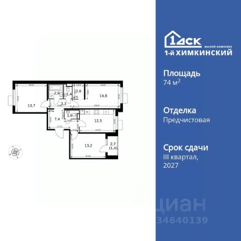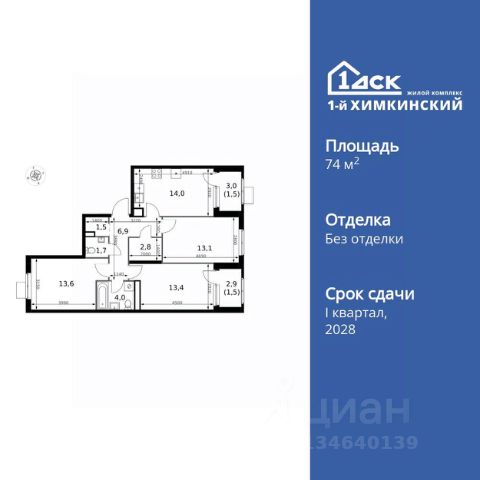 УСПЕЙ ПО СЕМЕЙНОЙ ИПОТЕКЕ БЕЗ НАЦЕНКИ! От 25 000 рублей в месяц! Прямая продажа от застройщика! Жилой Комплекс класса Комфорт. Продаётся 3-к квартира номер 150 общей площадью 74 кв.м. на 5-м этаже 10 этажного здания. Без отделки. Цена с учётом скидки. Особенности квартиры: - Просторная спальня, в которой можно разместить большую кровать. - Распашная планировка - отличное сочетание удобства и свободы. - Гостевой санузел - комфорт и удобство для ваших гостей. - Просторная кухня - место для семейных ужинов и кулинарных экспериментов. - Гардеробная - удобство для хранения и организации вещей. - Лоджия - уютное место для отдыха и тишины. Информация о комплексе: Квартал класса комфорт плюс, где современное городское пространство граничит с удивительной природой вокруг. 1-й Химкинский расположен на территории в 102 га и органично вписан в природное окружение Химкинского леса и канала им. Москвы. В проекте предусмотрена богатая коммерческая инфраструктура с собственным торговым центром, общеобразовательные учреждения и социальные объекты. Изюминкой жилого комплекса будут спортивно-оздоровительный комплекс с термами и SPA и семейный парк развлечений. Транспортная доступность: ЖК "1-й Химкинский" дает возможность выбрать любой способ передвижения как до города, так и до самых разных объектов, которые могут представлять интерес для его жителей. Не важно, какой способ передвижения вы предпочитаете, успевать всегда и везде можно вне зависимости от выбора транспорта. - 8 мин. пешком (800 м) до остановки "Золотая Арка" -10 мин пешком (1 км) до остановки "Поворот на Ивакино" Внутренняя инфраструктура: - Безопасность: закрытые дворы без машин, безбарьерная среда и сквозные подъезды, камеры на детских площадках с возможностью трансляции на смартфоне - Идеальный отдых в кругу семьи: семейный парк развлечений на территории, торговый центр (2-х этажный) общей площадью более 8 тыс. кв. м с фудкортом - Образование: 3 детских сада и современная муниципальная школа на 2450 мест - Спортивная среда: закольцованный веломаршрут с навигацией, спортивный комплекс с термами, закрытый тренажерный зал и зоны ворк-аута - Социальные объекты: поликлиника со станцией скорой помощи, пожарное депо - Подземный паркинг и кладовые помещения на -1 этаже, станция техобслуживания и автомойка на территории