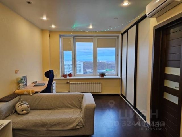 Параметры квартиры: площадь 57 кв.м., 2 раздельные комнаты + кухня (13 и 17 кв.м. + 10,7 кв.м.), раздельный санузел, 25 этаж - никто не топает сверху и отличная гидроизоляция кровли - за 5 лет ни одного инцидента в квартире и ни у кого из соседей не было), высота потолков 2,7 м, увеличенные оконные проёмы (подоконник на уровне колен - много света в квартире).