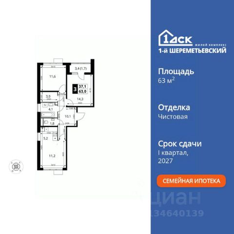 ДОПОЛНИТЕЛЬНАЯ СКИДКА ДО 10% В ОФИСЕ ПРОДАЖ! Прямая продажа от застройщика! Жилой Комплекс класса Комфорт Плюс. Продаётся 3-к квартира номер 485 общей площадью 69.7 кв.м. на 2-м этаже 17 этажного здания. Без отделки. Цена с учётом скидки. Особенности квартиры: - Мастер-зона с гардеробной. Просторное место для отдыха и удобного хранения вещей. - Просторная спальня, в которой можно разместить большую кровать. - Распашная планировка - отличное сочетание удобства и свободы. - Увеличенная ширина окна/окон - больше света и визуального простора. - Гостевой санузел - комфорт и удобство для ваших гостей. - Евроформат - просторное и удобное жилье с отличной планировкой. - Можно оборудовать рабочее место - комфорт для работы и учёбы. - Кухня-гостиная - идеальное пространство для встреч с близкими. - Линейная кухня - функциональность и практичность в одном решении. - Гардеробная - удобство для хранения и организации вещей. - Ниша под шкаф - компактное и удобное место для вещей. - Просторная лоджия - идеальное место для уютных вечеров. Информация о комплексе: ЖК 1-й Шереметьевский расположен в самом центре Подрезково, от него всего 6 минут пешком до одноименной станции ж/д и планируемой к открытию МЦД-3. В комплексе яркие и уютные, лобби, большая колясочная, лапомойка. Благодаря гостевому санузлу на 1 этаже прогулки станут по-настоящему долгими. Два лифта пассажирский и грузовой.Во всех корпусах 1-го Шереметьевского там устроены кладовые, а в корпусах 3-5 есть подземный паркинг. В ЖК 1-й Шереметьевский разнообразие площадей и планировок. Большие кухни-гостиные: в них два окна или больше. Во всех квартирах площадью от 40 кв.м. и выше спроектировано 2 санузла. Большие остекленные лоджии с отделкой. Система Умная квартира, реализованная в 1-м Шереметьевском. В каждой квартире установлены датчики протечек и запорные вентили с электроприводом, которые самостоятельно перекрывают воду в случае аварии. Мобильное приложение управляет группами электропотребителей: даже если вы забыли утюг включенным, можно обесточить его дистанционно. Транспортная доступность: - Общественный транспорт: До ближайших станций метро Планерной и Войковской около 40-50 минут на автобусе. 6 минут до ЖД станции Подрезково (МЦД-3) - Личный автотранспорт: Удобный выезд на Ленинградское шоссе позволяет быстро добираться до МКАДа и в центр Москвы, до платной трассы М11 и в аэропорт Шереметьево. 3 минуты до Ленинградского ш. 10 минут до платной трассы М11 15 минут до МКАД 20 минут до ст. м Войковская 25 минут до ст. м Планерная Внутренняя инфраструктура: 1-й Шереметьевский не только сокращает время, которое вы будете проводить в дороге. Но и предпринимает многое, чтобы вы меньше ездили и чаще ходили. На первых этажах корпусов разместятся фрешмаркеты и пункты выдачи маркетплейсов, салоны красоты и химчистки, кофейни и пекарни всё, что необходимо изо дня в день, но не заслуживает отдельной поездки на машине или такси. В квартале б
