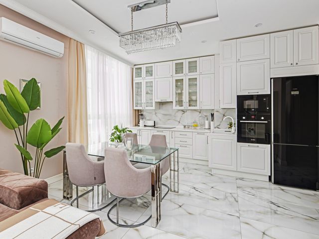 Продается готовая к жизни квартира 103 м² с дизайнерским ремонтом и всей мебелью в Химках, квартал Международный. Вариант "под ключ" для комфортной жизни семьи. Просторная светлая квартира на первом высоком этаже с отличной планировкой: три изолированные комнаты (спальня и две детские), большая кухня-гостиная, два санузла, гардеробная и отдельная прачечная зона. Высота потолков 3,20 м добавляет ощущение простора и свободы. Что делает это предложение особенным: Своя терраса и балкон: Редкое преимущество — прямой выход на уютную террасу (~5 м²) из детской комнаты. Из гостиной — выход на балкон (~7 м²), который при желании легко застеклить. Качественная отделка и повышенный комфорт: Во всей квартире, кроме спален, на полу уложен практичный и стильный керамогранит. В спальнях — ламинат. Для круглогодичного уюта сделан пол с подогревом: в ванной, на кухне и в коридоре — электрический теплый пол. Также в коридоре есть автоматическая подсветка, включающаяся при движении. Полное оснащение: Продается со всей мебелью и бытовой техникой: кухонный гарнитур, диван в гостиной, кровати, системы хранения (зеркальные шкафы в прихожей, гардеробная). Удобная парковка: Под каждым домом в квартале есть подземный паркинг. Место можно арендовать или выкупить в собственность, что решает вопрос с парковкой навсегда. Жизнь в тихом зеленом районе: Квартал Международный известен своей спокойной атмосферой. Рядом лесопарк для прогулок. В шаговой доступности вся необходимая инфраструктура: школы, детские сады, супермаркеты, аптеки, фитнес-центры. Выгодная транспортная доступность: До станции "Химки" — 10-15 минут на транспорте. До Москвы (м. "Речной Вокзал" / "Планерная") — около 15-20 минут на машине. До аэропорта Шереметьево — всего 10-15 минут езды. Квартира оставляет впечатление ухоженного, теплого и продуманного до мелочей дома. Приглашаем на просмотр! Купить 4-комнатную квартиру вторичка в Химках.