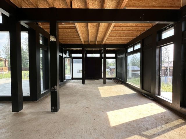 Вашему вниманию уютный дом в стиле Фахверк, построенный по технологии PREFAB. Все конструктивные элементы были обработаны и покрашены в цеху, стены также собраны в заводских условиях. Балки перекрытия представляют собой деревянный двутавр 360мм(h). Крыша плоская двухуровневая с организованным скрытым отводом воды. Кровля - ПВХ-мембрана. Общая площадь дома 292м2. Жилая зона - 147м2. По периметру дома выполнено атермальное остекление с легким зеркальным эффектом. Высота окон от 2,4 до 3,14 м. По проекту предусматривали такую планировку: - Прихожая - 10,74 м2, - Коридор - 10 м2, - Гостиная, кухня, столовая - 51,96 м2, - Гостевая - 18,96 м2, - Постирочная-кладовая - 4,56 м2, - Общий санузел - 4,62 м2, - Сауна - 6,58 м2, - Гардеробная - 8,76 м2, - Мастер-спальня - 19,34 м2, - Мастер-санузел - 8,82 м2, - Душевая - 3,3 м2. Благодаря большим панорамным окнам (1,88 х 2,44), из сауны открывается шикарный вид на лесные участки. Вход в сауну как с улицы, так и изнутри. Предусмотрены специальные ниши, куда можно заложить электроприводы для жалюзи и штор. Из мастер-спальни есть свой выход на большую террасу площадью 80м2. На данный момент полностью готов теплый контур, выполнена большая часть земельных работ, подключены дренажи. Оборудована отапливаемая железобетонная подъездная группа, а так же залиты ж/б конструкции в зоне участка, где будет располагаться костровище. Дом зарегистрирован. Обременений нет. Свободная продажа. Готовы оперативно выйти на сделку. Звоните !!!