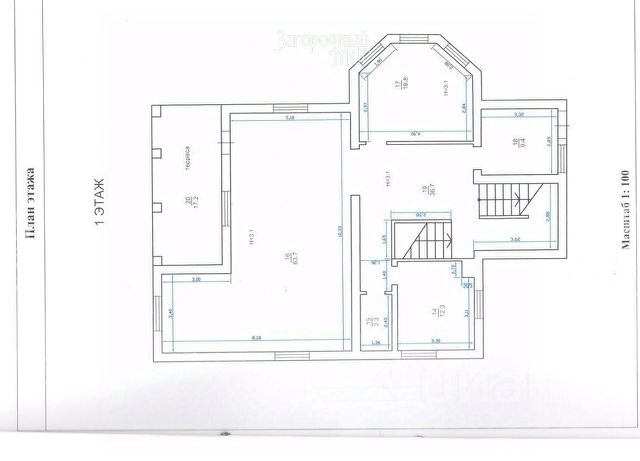 1-й этаж: застекленная терраса-9 кв.м, прихожия-4 кв.м, холл-10 кв.м, кухня-гостинная-40 кв.м, гостевая комная-12.7 кв.м, просторный санузел-7.3 кв.м, гардеробная-6 кв.м, зимний сад с дровяным камином-10 кв.м., установлены кондиционеры.