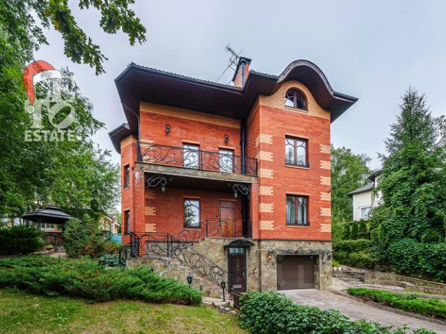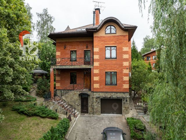 Построен дом из кирпича, фасад отделан немецким клинкерным кирпичом + шамот, медная фальцевая кровля. Отделка дома выполнена по индивидуальному дизайнерскому проекту. Большие понорамные окна, светлая отделка дополняют дом светом. Для внутренней отделки использовались дорогостоящие материалы: паркет (дуб), мрамор (Италия), двери (массив дерева). Лестница в доме сделана из мрамора с перилами ручной работы с элементами ковки. Итальянская кухня выполнена из массива, есть вся необходимая встроенная техника: Smeg, сантехника Vileroy&Bosh.