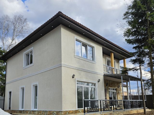 В отделке дома использованы натуральные и дорогостоящие материалы: мрамор, дерево, элементы ручной авторской ковки, выполнена многоуровневая система освещения.