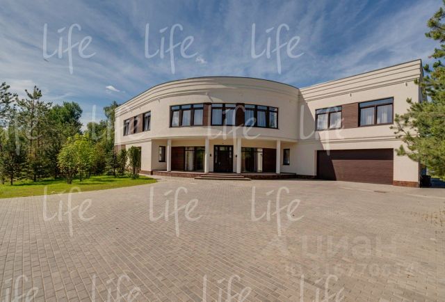 На участке правильной прямоугольной формы, площадью 60 соток, сделаны ландшафтный дизайн, дренаж и ливневстоки. На территории также расположены оранжерея с квартирой для персонала (площадь 150 кв м), гараж (98 кв м) для 2-х автомобилей, большая беседка и вольер для собак.