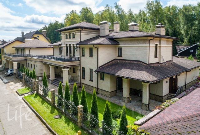 Пятницкое ш., 18 км, д. Благовещенка. Усадьба 450 кв. м под ключ с парком и лесом в закрытом охраняемом коттеджном поселке СНТ ТСЖ Благовещенка. Каменный дом 2010 г. постройки на монолитном фундаменте с монолитными перекрытиями. Кровля мягкая черепица. Наружная отделка с использованием итальянского мрамора. Дорогая внутренняя отделка. Полы 1 и цокольного этажей и лестница натуральный мрамор ручной работы. частично меблирован и оборудован всей необходимой бытовой техникой. Полностью готов к проживанию. 4 уровня. 1 этаж прихожая, гостиная с камином (натуральный мрамор, Италия), кухня со всей необходимой бытовой техникой, столовая, летний сад с камином (антикварные изразцы) и выходом в парк, с/у. 2 уровень между этажами кабинет с выходом на балкон. 2 этаж хозяйская спальня с большой ванной комнатой, 2 спальни, с/у с душевой кабиной. Цокольный этаж комната отдыха, комната с джакузи на 6 человек, хамам из натурального мрамора, с/у, котельная. Помещение для охраны с отдельным входом. Коммуникации: газ магистральный, электричество без ограничения, вода и канализация центральные. Теплые полы на 1 и цокольном этажах, в санузлах 2 этажа. Подогрев ступеней крыльца. Участок 35 соток под ИЖС, по фронтальной части кованый забор с автоматическими воротами. Часть участка занимает парк с газоном и розарием. Дорожки выложены гранитом. Парковый ансамбль с фонтаном (мрамор Италия, оговаривается отдельно). За домом лесная часть участка с огромными елями, соснами и березами. По всему участку проложен автополив. Перед домом выложенная брусчаткой парковка на 4 а/м. Имеется большой хозблок с помещением для проживания персонала. Дом оборудован системой видеонаблюдения и пожарной сигнализации, выведены в помещение для охраны. Поселок на 35 домовладений огорожен, строго охраняется, въезд по пропускам. Поселок расположен в лесу, в центре поселка большая огороженная лесная прогулочная зона. Обустроены детская и спортивная площадки, теннисный корт. В нескольких минутах транспортом вся необходимая инфраструктура магазины, рынки, кафе и рестораны, Кутузовская общеобразовательная школа. Вся необходимая инфраструктура г. Красногорска и Москвы в 15 км. Удобная транспортная доступность с Пятницкого шоссе. Автобусы и маршрутное такси до ст. метро Пятницкое шоссе и Тушинская. В указанную цену антикварная мебель и люстры не входят (оговариваются отдельно).
