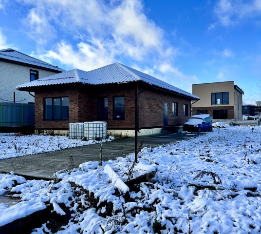 Построен дом из кирпича, фасад отделан немецким клинкерным кирпичом + шамот, медная фальцевая кровля. Отделка дома выполнена по индивидуальному дизайнерскому проекту. Большие понорамные окна, светлая отделка дополняют дом светом. Для внутренней отделки использовались дорогостоящие материалы: паркет (дуб), мрамор (Италия), двери (массив дерева). Лестница в доме сделана из мрамора с перилами ручной работы с элементами ковки. Итальянская кухня выполнена из массива, есть вся необходимая встроенная техника: Smeg, сантехника Vileroy&Bosh.