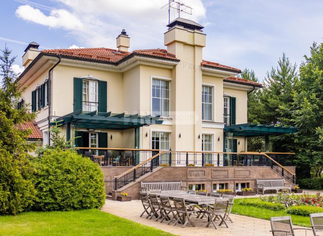 Лесной участок полностью огорожен и освещен, сделан дренаж и автополив. Въездные и гаражные ворота с автоматическим приводом. На участке организована детская площадка, оборудована летняя зона BBQ. На территории домовладения растут 16 вековых дубов.
