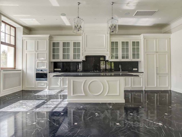 2-й этаж: холл, большая спальня с санузом и кабинетом, зал (бильярд, второй свет), комната с камином;