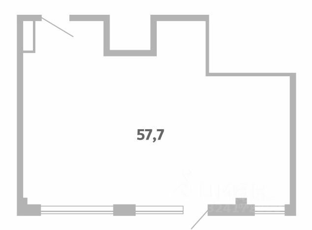 Помещение состоит из трех зон разделенных простенками. Есть санузел.