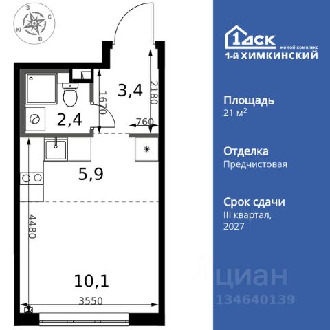 Прямая продажа от застройщика! Жилой Комплекс класса Комфорт. Продаётся квартира-студия номер 320 общей площадью 20.7 кв.м. на 4-м этаже 6 этажного здания. Отделка Whitebox. Цена с учётом скидки. Особенности квартиры: - Линейная планировка - максимальная функциональность и удобство. Информация о комплексе: Квартал класса комфорт плюс, где современное городское пространство граничит с удивительной природой вокруг. 1-й Химкинский расположен на территории в 102 га и органично вписан в природное окружение Химкинского леса и канала им. Москвы. В проекте предусмотрена богатая коммерческая инфраструктура с собственным торговым центром, общеобразовательные учреждения и социальные объекты. Изюминкой жилого комплекса будут спортивно-оздоровительный комплекс с термами и SPA и семейный парк развлечений. Транспортная доступность: ЖК "1-й Химкинский" дает возможность выбрать любой способ передвижения как до города, так и до самых разных объектов, которые могут представлять интерес для его жителей. Не важно, какой способ передвижения вы предпочитаете, успевать всегда и везде можно вне зависимости от выбора транспорта. - 8 мин. пешком (800 м) до остановки "Золотая Арка" -10 мин пешком (1 км) до остановки "Поворот на Ивакино" Внутренняя инфраструктура: - Безопасность: закрытые дворы без машин, безбарьерная среда и сквозные подъезды, камеры на детских площадках с возможностью трансляции на смартфоне - Идеальный отдых в кругу семьи: семейный парк развлечений на территории, торговый центр (2-х этажный) общей площадью более 8 тыс. кв. м с фудкортом - Образование: 3 детских сада и современная муниципальная школа на 2450 мест - Спортивная среда: закольцованный веломаршрут с навигацией, спортивный комплекс с термами, закрытый тренажерный зал и зоны ворк-аута - Социальные объекты: поликлиника со станцией скорой помощи, пожарное депо - Подземный паркинг и кладовые помещения на -1 этаже, станция техобслуживания и автомойка на территории Продается квартира 20 м2 в Химках.