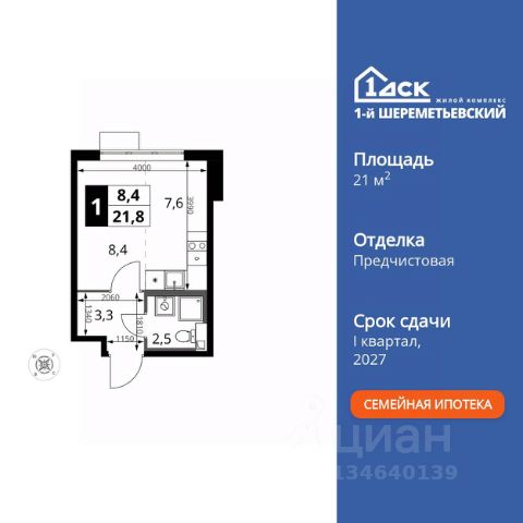 БЕЗ ПЕРВОНАЧАЛЬНОГО ВЗНОСА! Прямая продажа от застройщика! Жилой Комплекс класса Комфорт. Продаётся квартира-студия номер 566 общей площадью 19.4 кв.м. на 6-м этаже 17 этажного здания. Отделка Whitebox. Особенности квартиры: - Линейная планировка - максимальная функциональность и удобство. - Ниша под шкаф - компактное и удобное место для вещей. Квартира с предчистовой отделкой (White box). Вам не придется заниматься черновыми и трудоёмкими работы, а чистовую отделку и дизайн - сделайте на свой вкус. Информация о комплексе: Квартал класса комфорт плюс, где современное городское пространство граничит с удивительной природой вокруг. 1-й Химкинский расположен на территории в 102 га и органично вписан в природное окружение Химкинского леса и канала им. Москвы. В проекте предусмотрена богатая коммерческая инфраструктура с собственным торговым центром, общеобразовательные учреждения и социальные объекты. Изюминкой жилого комплекса будут спортивно-оздоровительный комплекс с термами и SPA и семейный парк развлечений. Транспортная доступность: ЖК "1-й Химкинский" дает возможность выбрать любой способ передвижения как до города, так и до самых разных объектов, которые могут представлять интерес для его жителей. Не важно, какой способ передвижения вы предпочитаете, успевать всегда и везде можно вне зависимости от выбора транспорта. - 8 мин. пешком (800 м) до остановки "Золотая Арка" -10 мин пешком (1 км) до остановки "Поворот на Ивакино" Внутренняя инфраструктура: - Безопасность: закрытые дворы без машин, безбарьерная среда и сквозные подъезды, камеры на детских площадках с возможностью трансляции на смартфоне - Идеальный отдых в кругу семьи: семейный парк развлечений на территории, торговый центр (2-х этажный) общей площадью более 8 тыс. кв. м с фудкортом - Образование: 3 детских сада и современная муниципальная школа на 2450 мест - Спортивная среда: закольцованный веломаршрут с навигацией, спортивный комплекс с термами, закрытый тренажерный зал и зоны ворк-аута - Социальные объекты: поликлиника со станцией скорой помощи, пожарное депо - Подземный паркинг и кладовые помещения на -1 этаже, станция техобслуживания и автомойка на территории Продается квартира 20 м2 в Химках.
