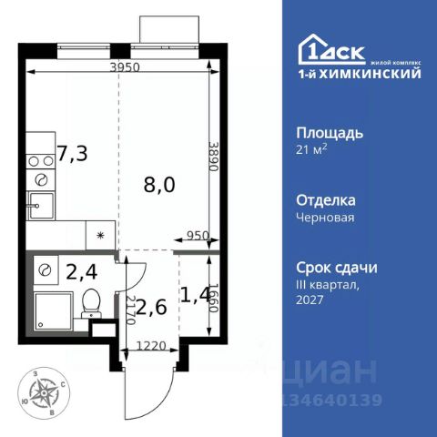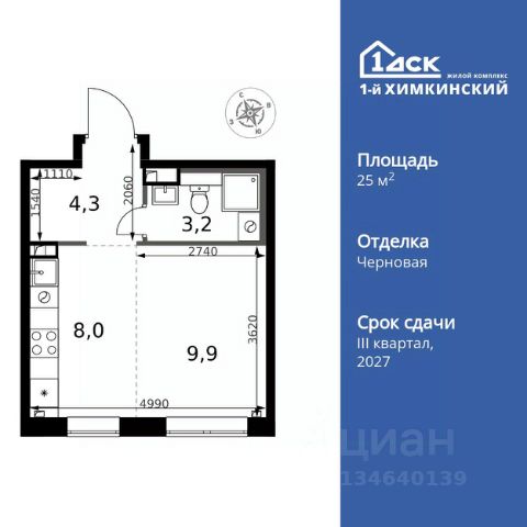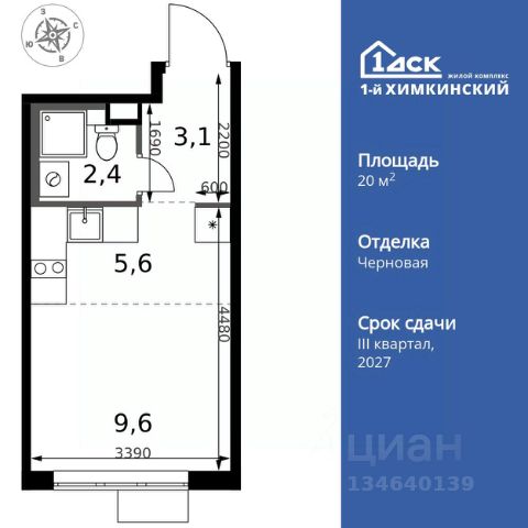 Прямая продажа от застройщика! Жилой Комплекс класса Комфорт. Продаётся квартира-студия номер 9 общей площадью 23.4 кв.м. на 2-м этаже 17 этажного дома. Отделка Whitebox. Цена с учётом скидки! Особенности квартиры: - Линейная планировка - максимальная функциональность и удобство. - Увеличенное количество окон - дополнительное освещение и свежий воздух. - Линейная кухня - функциональность и практичность в одном решении. - Ниша под шкаф - компактное и удобное место для вещей. Квартира с предчистовой отделкой (White box). Вам не придется заниматься черновыми и трудоёмкими работы, а чистовую отделку и дизайн - сделайте на свой вкус. Информация о комплексе: Квартал класса комфорт плюс, где современное городское пространство граничит с удивительной природой вокруг. 1-й Химкинский расположен на территории в 102 га и органично вписан в природное окружение Химкинского леса и канала им. Москвы. В проекте предусмотрена богатая коммерческая инфраструктура с собственным торговым центром, общеобразовательные учреждения и социальные объекты. Изюминкой жилого комплекса будут спортивно-оздоровительный комплекс с термами и SPA и семейный парк развлечений. Транспортная доступность: ЖК "1-й Химкинский" дает возможность выбрать любой способ передвижения как до города, так и до самых разных объектов, которые могут представлять интерес для его жителей. Не важно, какой способ передвижения вы предпочитаете, успевать всегда и везде можно вне зависимости от выбора транспорта. - 8 мин. пешком (800 м) до остановки "Золотая Арка" -10 мин пешком (1 км) до остановки "Поворот на Ивакино" Внутренняя инфраструктура: - Безопасность: закрытые дворы без машин, безбарьерная среда и сквозные подъезды, камеры на детских площадках с возможностью трансляции на смартфоне - Идеальный отдых в кругу семьи: семейный парк развлечений на территории, торговый центр (2-х этажный) общей площадью более 8 тыс. кв. м с фудкортом - Образование: 3 детских сада и современная муниципальная школа на 2450 мест - Спортивная среда: закольцованный веломаршрут с навигацией, спортивный комплекс с термами, закрытый тренажерный зал и зоны ворк-аута - Социальные объекты: поликлиника со станцией скорой помощи, пожарное депо - Подземный паркинг и кладовые помещения на -1 этаже, станция техобслуживания и автомойка на территории Квартира до 6 млн. рублей в Химках.
