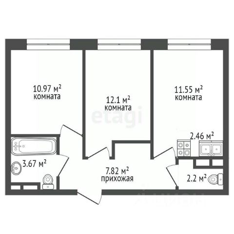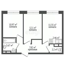 Гардеробная, спальня, гостиная, ванная, туалет, кухня и балкон. Общая площадь 58 метров. Квартира полностью меблирована и оборудована. В прихожей участок теплого пола для сушки обуви в межсезонье и зимой.