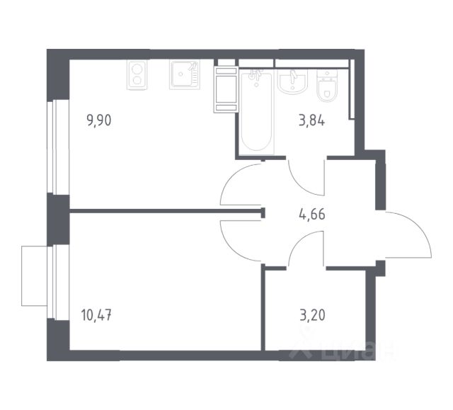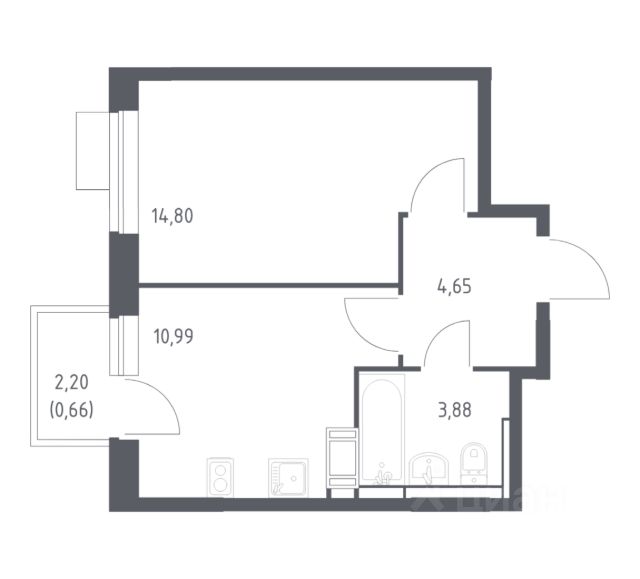 Однушка с балконом на 11 этаже 12-этажного дома, общей площадью 34,98 кв.м