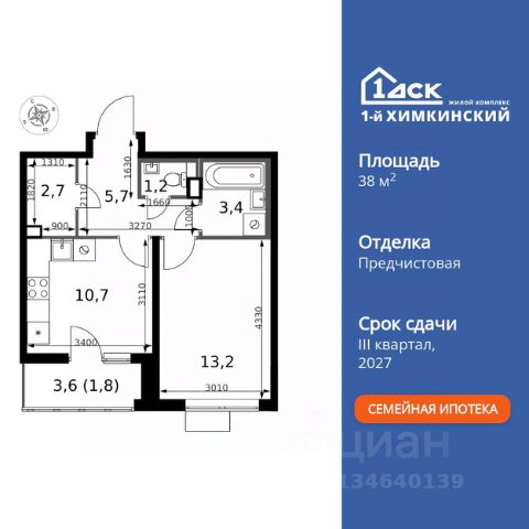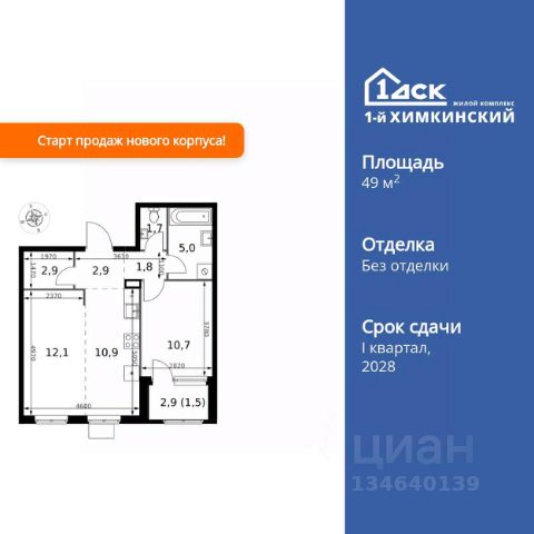 БЕЗ ПЕРВОНАЧАЛЬНОГО ВЗНОСА! Прямая продажа от застройщика! Жилой Комплекс класса Комфорт. Продаётся 1-к квартира номер 135 общей площадью 33.3 кв.м. на 4-м этаже 10 этажного здания. Без отделки. Цена с учётом скидки. Особенности квартиры: - Организуем показ в удобное для вас время! - Линейная планировка - максимальная функциональность и удобство. - Ниша под шкаф - компактное и удобное место для вещей. - Лоджия - уютное место для отдыха и тишины. Квартира без отделки. Чистый холст для воплощения интерьера вашей мечты. Информация о комплексе: "1-й Химкинский": гармония современного города и природы на 102 га у Химкинского леса и канала им. Москвы. Развитая инфраструктура: ТЦ, школы, спорткомплекс с термами и СПА, парк развлечений. Идеальный баланс для жизни в окружении зелени и городского комфорта. Транспортная доступность: ЖК "1-й Химкинский" дает возможность выбрать любой способ передвижения как до города, так и до самых разных объектов, которые могут представлять интерес для его жителей. Не важно, какой способ передвижения вы предпочитаете, успевать всегда и везде можно вне зависимости от выбора транспорта. - 8 мин. пешком (800 м) до остановки "Золотая Арка" -10 мин пешком (1 км) до остановки "Поворот на Ивакино" Внутренняя инфраструктура: Безопасность: закрытые дворы без машин, безбарьерная среда, сквозные подъезды, камеры на детских площадках с трансляцией на смартфон. Отдых: семейный парк развлечений, двухэтажный ТЦ 8 000 м² с фудкортом. Образование: 4 детских сада, 2 муниципальные школы. Спорт: закольцованный веломаршрут, спорткомплекс с термами, тренажерный зал, воркаут зоны. Инфраструктура: поликлиника со станцией скорой помощи, пожарное депо. Паркинг: подземный паркинг, кладовые на -1 этаже, СТО и автомойка на территории. Квартира без отделки - чистый холст для вашего интерьера.