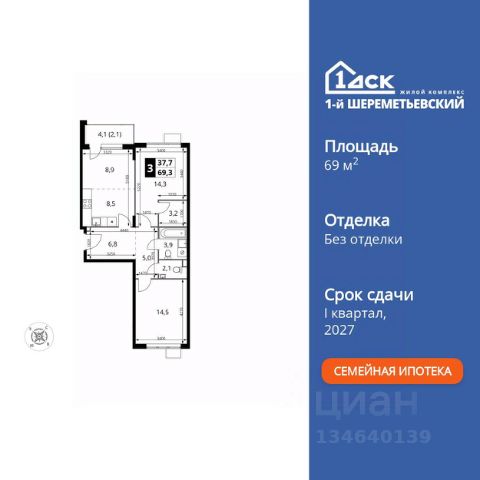 Прямая продажа от застройщика! Жилой Комплекс класса Комфорт Плюс. Продаётся 3-к квартира номер 1222 общей площадью 69.3 кв.м. на 6-м этаже 17 этажного здания. Без отделки. Особенности квартиры: - Организуем показ в удобное для вас время! - Мастер-зона с гардеробной. Просторное место для отдыха и удобного хранения вещей. - Просторная спальня, в которой можно разместить большую кровать. - Распашная планировка - отличное сочетание удобства и свободы. - Увеличенная ширина окна/окон - больше света и визуального простора. - Возможность установить вторую раковину или биде - удобство для всей семьи. - Гостевой санузел - комфорт и удобство для ваших гостей. - Евроформат - просторное и удобное жилье с отличной планировкой. - Место для игры/занятия спортом - идеальное пространство для активных детей. - Можно оборудовать 2 или более рабочих места - пространство для нескольких человек. - Можно оборудовать рабочее место - комфорт для работы и учёбы. - Кухня-гостиная - идеальное пространство для встреч с близкими. - Возможность добавить спальное место - дополнительный комфорт для гостей. - Гардеробная - удобство для хранения и организации вещей. - Лоджия - уютное место для отдыха и тишины. Квартира без отделки. Чистый холст для воплощения интерьера вашей мечты. Информация о комплексе: ЖК "1-й Шереметьевский" в центре Подрезково: 6 минут пешком до ж/д станции и МЦД-3. Яркие лобби, колясочная, лапомойка и гостевой санузел на первом этаже. Два лифта, кладовые и подземный паркинг в корпусах 3-5. Разнообразие планировок с большими кухнями-гостиными, двумя санузлами от 40 кв.м и остеклёнными лоджиями. Умный дом с защитой от протечек и мобильным управлением электроприборами. Транспортная доступность: - Общественный транспорт: До ближайших станций метро Планерной и Войковской около 40-50 минут на автобусе. 6 минут до ЖД станции Подрезково (МЦД-3) - Личный автотранспорт: Удобный выезд на Ленинградское шоссе позволяет быстро добираться до МКАДа и в центр Москвы, до платной трассы М11 и в аэропорт Шереметьево. - 3 минуты до Ленинградского ш. - 10 минут до платной трассы М11 - 15 минут до МКАД - 20 минут до ст. м Войковская - 25 минут до ст. м Планерная Внутренняя инфраструктура: "1-й Шереметьевский": жизнь в шаговой доступности. На первых этажах - магазины со свежими продуктами, кофейни, химчистки и салоны красоты для повседневных нужд без поездок. Собственная школа на 1100 учеников с бассейном и детский сад на 400 малышей с музыкальным залом. Дворы без машин, безопасные игровые площадки и зоны тихого отдыха. Закольцованный веломаршрут с навигацией и парковками. Всё для комфортной жизни без лишних перемещений. Квартира без отделки - чистый холст для вашего интерьера.