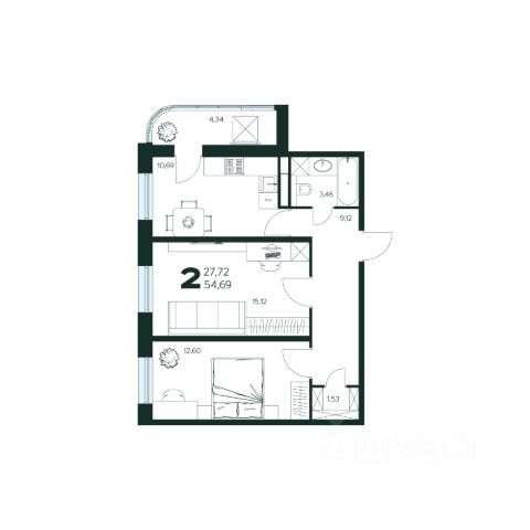 Продаётся 2-комнатная квартира в строящемся доме (Корпус 2), срок сдачи: III-кв. 2027, общей площадью 54.69 кв.м., на 7 этаже. Новый жилой комплекс "по ул. Первомайская"