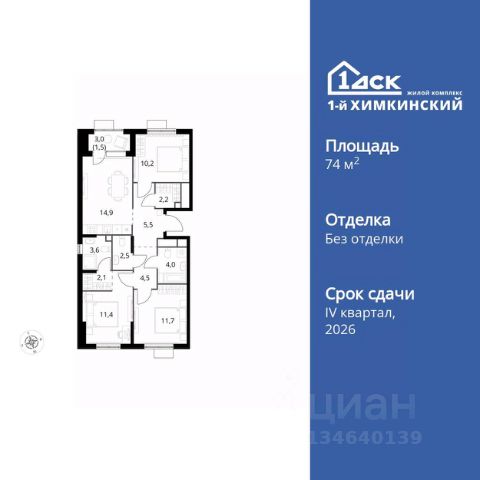 УСПЕЙ ПО СЕМЕЙНОЙ ИПОТЕКЕ БЕЗ НАЦЕНКИ! От 25 000 рублей в месяц! Прямая продажа от застройщика! Жилой Комплекс класса Комфорт. Продаётся 3-к квартира номер 624 общей площадью 74.9 кв.м. на 12-м этаже 17 этажного здания. Отделка Whitebox. Особенности квартиры: - Мастер-зона с гардеробной. Просторное место для отдыха и удобного хранения вещей. - Просторная спальня, в которой можно разместить большую кровать. - Распашная планировка - отличное сочетание удобства и свободы. - Раздельный санузел - больше удобства для всех членов семьи. - Гардеробная - удобство для хранения и организации вещей. - Ниша под шкаф - компактное и удобное место для вещей. - Лоджия - уютное место для отдыха и тишины. Квартира с предчистовой отделкой (White box). Вам не придется заниматься черновыми и трудоёмкими работы, а чистовую отделку и дизайн - сделайте на свой вкус. Информация о комплексе: Квартал класса комфорт плюс, где современное городское пространство граничит с удивительной природой вокруг. 1-й Химкинский расположен на территории в 102 га и органично вписан в природное окружение Химкинского леса и канала им. Москвы. В проекте предусмотрена богатая коммерческая инфраструктура с собственным торговым центром, общеобразовательные учреждения и социальные объекты. Изюминкой жилого комплекса будут спортивно-оздоровительный комплекс с термами и SPA и семейный парк развлечений. Транспортная доступность: ЖК "1-й Химкинский" дает возможность выбрать любой способ передвижения как до города, так и до самых разных объектов, которые могут представлять интерес для его жителей. Не важно, какой способ передвижения вы предпочитаете, успевать всегда и везде можно вне зависимости от выбора транспорта. - 8 мин. пешком (800 м) до остановки "Золотая Арка" -10 мин пешком (1 км) до остановки "Поворот на Ивакино" Внутренняя инфраструктура: - Безопасность: закрытые дворы без машин, безбарьерная среда и сквозные подъезды, камеры на детских площадках с возможностью трансляции на смартфоне - Идеальный отдых в кругу семьи: семейный парк развлечений на территории, торговый центр (2-х этажный) общей площадью более 8 тыс. кв. м с фудкортом - Образование: 3 детских сада и современная муниципальная школа на 2450 мест - Спортивная среда: закольцованный веломаршрут с навигацией, спортивный комплекс с термами, закрытый тренажерный зал и зоны ворк-аута - Социальные объекты: поликлиника со станцией скорой помощи, пожарное депо - Подземный паркинг и кладовые помещения на -1 этаже, станция техобслуживания и автомойка на территории