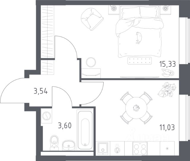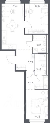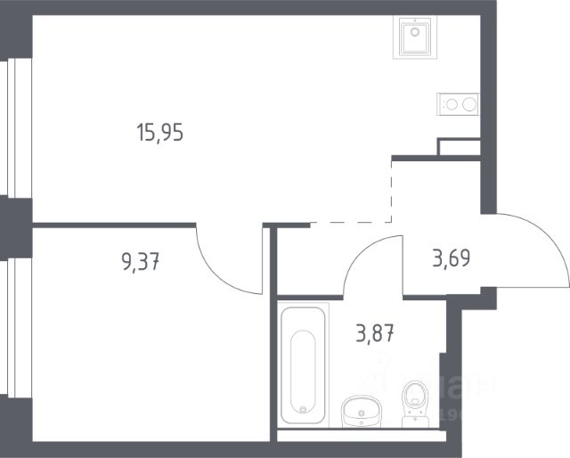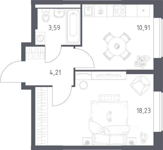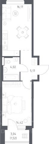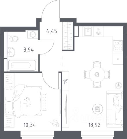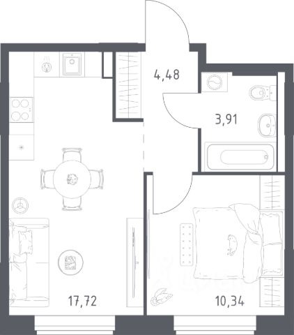 В Жилищном комплексе "Фрайдей Вилладж" в 6 км от метро Пятницкое шоссе продается однокомнатная квартира класса Комфорт общей площадью 41.1 кв.м.