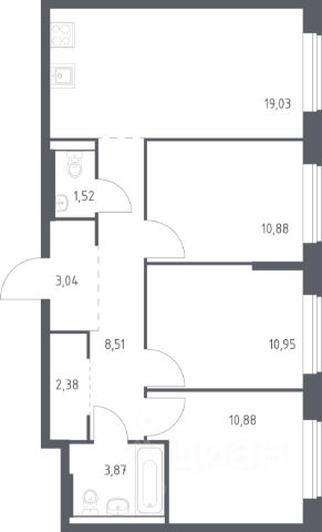 В шаговой доступности находятся сетевые магазины: "Чижик", "Пятерочка", "Магнит", ресторан "Вивальди", аптека, пункт выдачи Ozon.