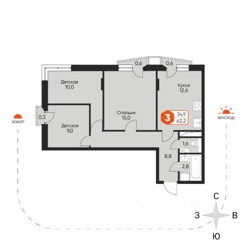 Продаётся 3-комнатная квартира в строящемся доме (Корпус 1), срок сдачи: IV-кв. 2025, общей площадью 61.2 кв.м., на 2 этаже. Проектное финансирование ПАО Сбербанк. Рассрочка до 4 квартала 2024 года. Ипотека по гос. программам от ведущих банков. Жилой комплекс комфорт-класса "Фрунзенский" находится в современном зелёном микрорайоне Химок. Это два восьмиэтажных монолитных корпуса со стильными фасадами и резными балконами, объединенные подземной парковкой. Проект жилого комплекса предусматривает наличие детской и спортивной площадок, кладовые помещения, гостевой паркинг и озеленение. В соседних зданиях находятся магазин "Пятёрочка" и современная общеобразовательная школа с углубленным изучением отдельных предметов. В пешей доступности детский сад, ясли "Золотой ключик" и детская поликлиника. Новостройка расположена в 10 минутах пешком от ж/д станции Сходня (18 минут на комфортабельном поезде "Ласточка" от Ленинградского вокзала).