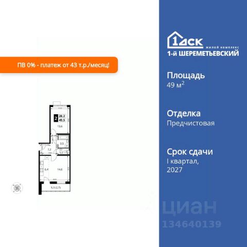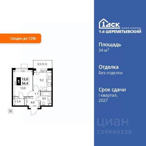 Прямая продажа от застройщика! Жилой Комплекс класса Комфорт Плюс. Продаётся 1-к квартира номер 102 общей площадью 34.4 кв.м. на 4-м этаже 16 этажного здания. Без отделки. Особенности квартиры: - Мастер-зона с гардеробной. Просторное место для отдыха и удобного хранения вещей. - Просторная спальня, в которой можно разместить большую кровать. - Линейная планировка - максимальная функциональность и удобство. - Можно оборудовать рабочее место - комфорт для работы и учёбы. - Гардеробная - удобство для хранения и организации вещей. - Ниша под шкаф - компактное и удобное место для вещей. - Балкон - открытое пространство для отдыха. Информация о комплексе: ЖК 1-й Шереметьевский расположен в самом центре Подрезково, от него всего 6 минут пешком до одноименной станции ж/д и планируемой к открытию МЦД-3. В комплексе яркие и уютные, лобби, большая колясочная, лапомойка. Благодаря гостевому санузлу на 1 этаже прогулки станут по-настоящему долгими. Два лифта пассажирский и грузовой.Во всех корпусах 1-го Шереметьевского там устроены кладовые, а в корпусах 3-5 есть подземный паркинг. В ЖК 1-й Шереметьевский разнообразие площадей и планировок. Большие кухни-гостиные: в них два окна или больше. Во всех квартирах площадью от 40 кв.м. и выше спроектировано 2 санузла. Большие остекленные лоджии с отделкой. Система Умная квартира, реализованная в 1-м Шереметьевском. В каждой квартире установлены датчики протечек и запорные вентили с электроприводом, которые самостоятельно перекрывают воду в случае аварии. Мобильное приложение управляет группами электропотребителей: даже если вы забыли утюг включенным, можно обесточить его дистанционно. Транспортная доступность: - Общественный транспорт: До ближайших станций метро Планерной и Войковской около 40-50 минут на автобусе. 6 минут до ЖД станции Подрезково (МЦД-3) - Личный автотранспорт: Удобный выезд на Ленинградское шоссе позволяет быстро добираться до МКАДа и в центр Москвы, до платной трассы М11 и в аэропорт Шереметьево. 3 минуты до Ленинградского ш. 10 минут до платной трассы М11 15 минут до МКАД 20 минут до ст. м Войковская 25 минут до ст. м Планерная Внутренняя инфраструктура: 1-й Шереметьевский не только сокращает время, которое вы будете проводить в дороге. Но и предпринимает многое, чтобы вы меньше ездили и чаще ходили. На первых этажах корпусов разместятся фрешмаркеты и пункты выдачи маркетплейсов, салоны красоты и химчистки, кофейни и пекарни всё, что необходимо изо дня в день, но не заслуживает отдельной поездки на машине или такси. В квартале будут построены собственные школа и детский сад. Школа рассчитана на 1100 учеников. В ней будут 25-метровый бассейн и просторный атриум, медиатека. Детский сад рассчитана на 400 малышей. Здесь стильный дизайн и комфортные группы, большой физкультурный зал и просторный зал для занятия музыкой. Дворы без машин. Безопасные детские площадки. Вдоль корпусов организованы зоны тихого отдыха: детский гомон с далеких