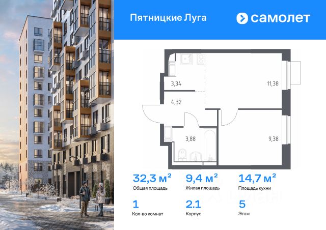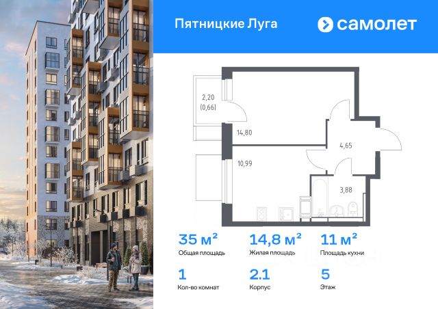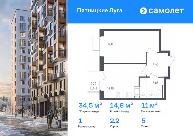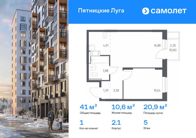 Очень выгодное предложение в уже построенном доме ЖК "Пятницкие луга", корпус 1/1.