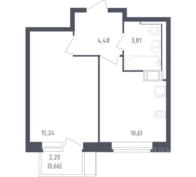 Гардеробная, спальня, гостиная, ванная, туалет, кухня и балкон. Общая площадь 58 метров. Квартира полностью меблирована и оборудована. В прихожей участок теплого пола для сушки обуви в межсезонье и зимой.