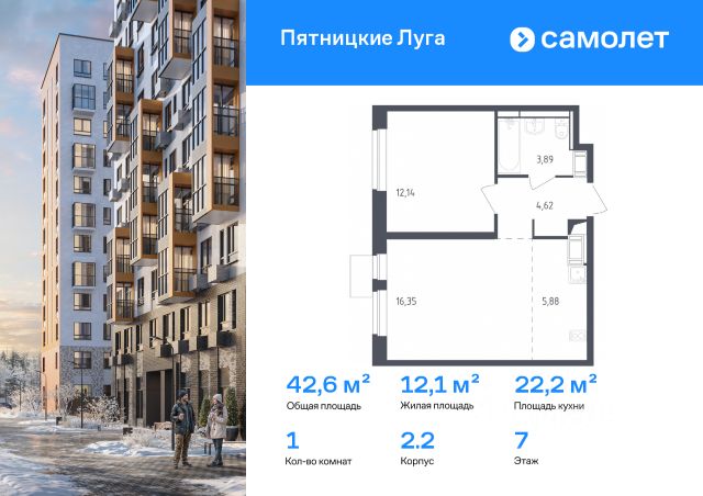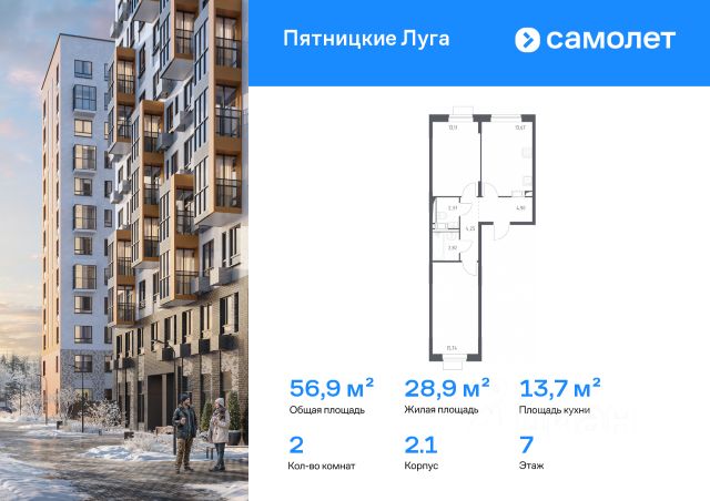 Строим кварталы для жизни с заботой о будущем. Предлагается 2-комнатная квартира комфорт-класса 59,87 кв.м в корпусе 2.1 на 7 этаже, в ЖК "Пятницкие Луга" Квартира без отделки. Доступность опции "отделка" и возможность комплектации мебелью и декором уточняйте у застройщика. Приобрести квартиру возможно по специальным акциям от застройщика, с текущими условиями акций можно ознакомиться в блоке "Акций". Цена динамическая и может отличаться, уточняйте актуальность у застройщика. Жить в проекте "Пятницкие Луга" — значит просыпаться с видом на лес или реку. До Пятницкого шоссе — 5 минут на авто, до метро "Пятницкое шоссе" — 12 минут. В 2025 году появится тоннель с выездом на Путилковское шоссе. Рядом лесопарки и усадьба. На территории комплекса появятся 4 детских сада, 2 школы и поликлиника. Во дворе — сквер, внутренний сад, плейхаб и спортхаб. Квартиры с отделкой. Доступна улучшенная отделка, мебель и декор.