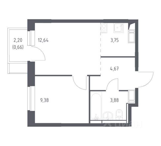 Площадь: 22,4 кв. м. — компактное и функциональное пространство.