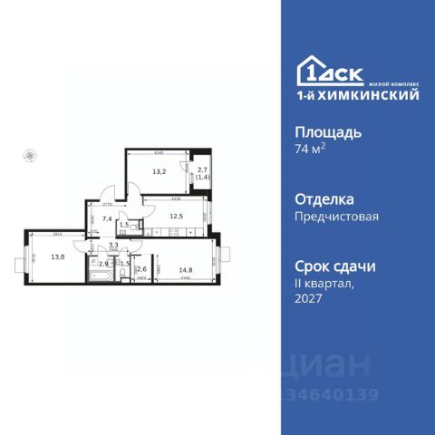 Прямая продажа от застройщика! Жилой Комплекс класса Комфорт. Продаётся 3-к квартира номер 597 общей площадью 74.9 кв.м. на 9-м этаже 17 этажного здания. Отделка Whitebox. Особенности квартиры: - Мастер-зона с гардеробной. Просторное место для отдыха и удобного хранения вещей. - Просторная спальня, в которой можно разместить большую кровать. - Распашная планировка - отличное сочетание удобства и свободы. - Раздельный санузел - больше удобства для всех членов семьи. - Гардеробная - удобство для хранения и организации вещей. - Ниша под шкаф - компактное и удобное место для вещей. - Лоджия - уютное место для отдыха и тишины. Квартира с предчистовой отделкой (White box). Вам не придется заниматься черновыми и трудоёмкими работы, а чистовую отделку и дизайн - сделайте на свой вкус. Информация о комплексе: Квартал класса комфорт плюс, где современное городское пространство граничит с удивительной природой вокруг. 1-й Химкинский расположен на территории в 102 га и органично вписан в природное окружение Химкинского леса и канала им. Москвы. В проекте предусмотрена богатая коммерческая инфраструктура с собственным торговым центром, общеобразовательные учреждения и социальные объекты. Изюминкой жилого комплекса будут спортивно-оздоровительный комплекс с термами и SPA и семейный парк развлечений. Транспортная доступность: ЖК "1-й Химкинский" дает возможность выбрать любой способ передвижения как до города, так и до самых разных объектов, которые могут представлять интерес для его жителей. Не важно, какой способ передвижения вы предпочитаете, успевать всегда и везде можно вне зависимости от выбора транспорта. - 8 мин. пешком (800 м) до остановки "Золотая Арка" -10 мин пешком (1 км) до остановки "Поворот на Ивакино" Внутренняя инфраструктура: - Безопасность: закрытые дворы без машин, безбарьерная среда и сквозные подъезды, камеры на детских площадках с возможностью трансляции на смартфоне - Идеальный отдых в кругу семьи: семейный парк развлечений на территории, торговый центр (2-х этажный) общей площадью более 8 тыс. кв. м с фудкортом - Образование: 3 детских сада и современная муниципальная школа на 2450 мест - Спортивная среда: закольцованный веломаршрут с навигацией, спортивный комплекс с термами, закрытый тренажерный зал и зоны ворк-аута - Социальные объекты: поликлиника со станцией скорой помощи, пожарное депо - Подземный паркинг и кладовые помещения на -1 этаже, станция техобслуживания и автомойка на территории