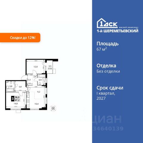 Прямая продажа от застройщика! Жилой Комплекс класса Комфорт Плюс. Продаётся 3-к квартира номер 32 общей площадью 76.3 кв.м. на 9-м этаже 17 этажного здания. Чистовая отделка. Цена с учётом скидки. Особенности квартиры: - Просторная спальня, в которой можно разместить большую кровать. - Распашная планировка - отличное сочетание удобства и свободы. - Увеличенная ширина окна/окон - больше света и визуального простора. - Панорамное окно (1 и более) - раскрывает просторы вашего дома. - Гостевой санузел - комфорт и удобство для ваших гостей. - Можно оборудовать 2 или более рабочих места - пространство для нескольких человек. - Просторная кухня - место для семейных ужинов и кулинарных экспериментов. - Лоджия - уютное место для отдыха и тишины. Информация о комплексе: ЖК 1-й Шереметьевский расположен в самом центре Подрезково, от него всего 6 минут пешком до одноименной станции ж/д и планируемой к открытию МЦД-3. В комплексе яркие и уютные, лобби, большая колясочная, лапомойка. Благодаря гостевому санузлу на 1 этаже прогулки станут по-настоящему долгими. Два лифта пассажирский и грузовой.Во всех корпусах 1-го Шереметьевского там устроены кладовые, а в корпусах 3-5 есть подземный паркинг. В ЖК 1-й Шереметьевский разнообразие площадей и планировок. Большие кухни-гостиные: в них два окна или больше. Во всех квартирах площадью от 40 кв.м. и выше спроектировано 2 санузла. Большие остекленные лоджии с отделкой. Система Умная квартира, реализованная в 1-м Шереметьевском. В каждой квартире установлены датчики протечек и запорные вентили с электроприводом, которые самостоятельно перекрывают воду в случае аварии. Мобильное приложение управляет группами электропотребителей: даже если вы забыли утюг включенным, можно обесточить его дистанционно. Транспортная доступность: - Общественный транспорт: До ближайших станций метро Планерной и Войковской около 40-50 минут на автобусе. 6 минут до ЖД станции Подрезково (МЦД-3) - Личный автотранспорт: Удобный выезд на Ленинградское шоссе позволяет быстро добираться до МКАДа и в центр Москвы, до платной трассы М11 и в аэропорт Шереметьево. 3 минуты до Ленинградского ш. 10 минут до платной трассы М11 15 минут до МКАД 20 минут до ст. м Войковская 25 минут до ст. м Планерная Внутренняя инфраструктура: 1-й Шереметьевский не только сокращает время, которое вы будете проводить в дороге. Но и предпринимает многое, чтобы вы меньше ездили и чаще ходили. На первых этажах корпусов разместятся фрешмаркеты и пункты выдачи маркетплейсов, салоны красоты и химчистки, кофейни и пекарни всё, что необходимо изо дня в день, но не заслуживает отдельной поездки на машине или такси. В квартале будут построены собственные школа и детский сад. Школа рассчитана на 1100 учеников. В ней будут 25-метровый бассейн и просторный атриум, медиатека. Детский сад рассчитана на 400 малышей. Здесь стильный дизайн и комфортные группы, большой физкультурный зал и просторный зал для занятия музыкой. Дв