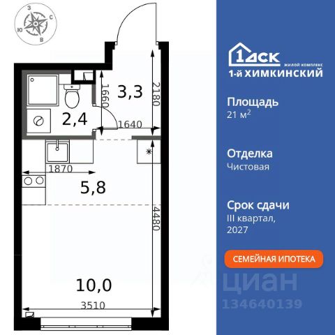 Строим кварталы для жизни с заботой о будущем. Предлагается студия комфорт-класса площадью 22,2 кв.м в корпусе 3 на 14-м этаже, в жилом комплексе "Квартал Ивакино". Позаботились о вашем времени, поэтому квартиры доступны с готовой отделкой. Выполнили ремонт всех помещений и создали интерьеры с продуманными деталями. В жилых комнатах поклеены обои горячего тиснения, на полу уложен ламинат с текстурой дуба и фаской. Ванные комнаты в отделке из керамогранита, в них установлена хромированная сантехника. Во всех помещениях гладкие матовые двери с хромированной фурнитурой и белые натяжные матовые потолки. Остается только выбрать, какую картину повесить над кроватью и где поставить лежанку для собаки. Кроме того, вы можете быстро выбрать мебель и декор на нашем маркетплейсе — без очередей и длинных поездок в магазин. Вариант без отделки — для тех, кто хочет претворить в жизнь собственные дизайнерские решения. Приобрести квартиру возможно по специальным акциям от застройщика, с текущими условиями акций можно ознакомиться в блоке "Акций". Цена динамическая и может отличаться, уточняйте актуальность у застройщика. "Квартал Ивакино" — уютный квартал для жизни в окружении водоемов. До МКАДа 15 минут, до станций МЦД-1 и МЦД-3 — 15 минут, метро "Ховрино" и "Беломорская" в 20 минутах. Всего 5 минут — и вы на набережной канала им. Москвы. На территории комплекса запланированы — 2 школы, 3 детских сада (один уже сдан), спортивный центр и поликлиника. Во дворе-парке без машин есть спортивные и детские площадки. Квартиры с готовой отделкой или без.