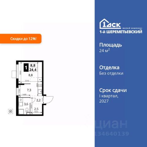 Прямая продажа от застройщика! Жилой Комплекс класса Комфорт Плюс. Продаётся квартира-студия номер 468 общей площадью 23 кв.м. на 11-м этаже 16 этажного здания. Отделка Whitebox. Цена с учётом скидки. Особенности квартиры: - Линейная планировка - максимальная функциональность и удобство. - Увеличенная ширина окна/окон - больше света и визуального простора. - Гибкая планировка - создайте пространство по своему вкусу. - Можно оборудовать рабочее место - комфорт для работы и учёбы. - Линейная кухня - функциональность и практичность в одном решении. - Ниша под шкаф - компактное и удобное место для вещей. Квартира с предчистовой отделкой (White box). Вам не придется заниматься черновыми и трудоёмкими работы, а чистовую отделку и дизайн - сделайте на свой вкус. Информация о комплексе: ЖК 1-й Шереметьевский расположен в самом центре Подрезково, от него всего 6 минут пешком до одноименной станции ж/д и планируемой к открытию МЦД-3. В комплексе яркие и уютные, лобби, большая колясочная, лапомойка. Благодаря гостевому санузлу на 1 этаже прогулки станут по-настоящему долгими. Два лифта пассажирский и грузовой.Во всех корпусах 1-го Шереметьевского там устроены кладовые, а в корпусах 3-5 есть подземный паркинг. В ЖК 1-й Шереметьевский разнообразие площадей и планировок. Большие кухни-гостиные: в них два окна или больше. Во всех квартирах площадью от 40 кв.м. и выше спроектировано 2 санузла. Большие остекленные лоджии с отделкой. Система Умная квартира, реализованная в 1-м Шереметьевском. В каждой квартире установлены датчики протечек и запорные вентили с электроприводом, которые самостоятельно перекрывают воду в случае аварии. Мобильное приложение управляет группами электропотребителей: даже если вы забыли утюг включенным, можно обесточить его дистанционно. Транспортная доступность: - Общественный транспорт: До ближайших станций метро Планерной и Войковской около 40-50 минут на автобусе. 6 минут до ЖД станции Подрезково (МЦД-3) - Личный автотранспорт: Удобный выезд на Ленинградское шоссе позволяет быстро добираться до МКАДа и в центр Москвы, до платной трассы М11 и в аэропорт Шереметьево. 3 минуты до Ленинградского ш. 10 минут до платной трассы М11 15 минут до МКАД 20 минут до ст. м Войковская 25 минут до ст. м Планерная Внутренняя инфраструктура: 1-й Шереметьевский не только сокращает время, которое вы будете проводить в дороге. Но и предпринимает многое, чтобы вы меньше ездили и чаще ходили. На первых этажах корпусов разместятся фрешмаркеты и пункты выдачи маркетплейсов, салоны красоты и химчистки, кофейни и пекарни всё, что необходимо изо дня в день, но не заслуживает отдельной поездки на машине или такси. В квартале будут построены собственные школа и детский сад. Школа рассчитана на 1100 учеников. В ней будут 25-метровый бассейн и просторный атриум, медиатека. Детский сад рассчитана на 400 малышей. Здесь стильный дизайн и комфортные группы, большой физкультурный зал и просторный зал для з
