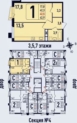 Арт. 119228651 Возможна продажа квартиры с отделкой от застройщика White box + 20 000 р за 1 кв м! Все виды возможной ипотеки! Дом построен. Ключи декабрь 2025 г. Предлагается однокомнатная квартира 42,5 кв.м. с классической планировкой с одной спальней 17,8 кв.м и кухней 13,5 кв.м. Предусмотрено место для гардеробной 3,3 кв.м. Центральное отопление и водоснабжение. Прекрасный вид из окна - во двор! ЖК "Фрунзенский" находится в экологически чистом районе Подмосковья, городском округе Химки, микрорайоне Сходня, по адресу: улица Фрунзе, дом 30. Идеальное место для комфортной жизни: - Малоэтажный 8-и этажный дом, состоящий из двух корпусов - Дом монолитный - Просторные входные группы - Коммерческие помещения на 1-м этаже здания, кладовые помещения на -1 этаже - Подземный паркинг и достаточное количество открытых машиномест - Благоустроенная территория: детские площадки, зоны отдыха для взрослых, зона воркаута Транспортная доступность: - До ж/д станции Сходня всего 10 минут пешком, на "Ласточке" 18 минут до метро Комсомольская! - Автобусы и маршрутное такси - Для автолюбителей на выбор представлены 3 трассы - Новосходненское шоссе, Ленинградское шоссе и скоростная трасса М11 - Новая линия наземного метро МЦД-3 - 10 минут пешком. Квартира без отделки. Возможна продажа квартиры с отделкой от застройщика White box + 20 000 р за 1 кв м! Ипотека от ведущих банков! Возможно использовать мат капитал и субсидии. С оформлением ипотеки поможем - опытный брокер и юрист, Трейд Ин вашей квартиры! Квартира, покупка на мат. капитал в городском округе Химках Московской области.