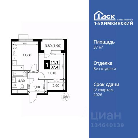Прямая продажа от застройщика! Жилой Комплекс класса Комфорт. Продаётся 1-к квартира номер 218 общей площадью 37.4 кв.м. на 7-м этаже 16 этажного здания. Без отделки. Особенности квартиры: - Мастер-зона с гардеробной. Просторное место для отдыха и удобного хранения вещей. - Линейная планировка - максимальная функциональность и удобство. - Гардеробная - удобство для хранения и организации вещей. - Ниша под шкаф - компактное и удобное место для вещей. - Лоджия - уютное место для отдыха и тишины. Информация о комплексе: Квартал класса комфорт плюс, где современное городское пространство граничит с удивительной природой вокруг. 1-й Химкинский расположен на территории в 102 га и органично вписан в природное окружение Химкинского леса и канала им. Москвы. В проекте предусмотрена богатая коммерческая инфраструктура с собственным торговым центром, общеобразовательные учреждения и социальные объекты. Изюминкой жилого комплекса будут спортивно-оздоровительный комплекс с термами и SPA и семейный парк развлечений. Транспортная доступность: ЖК "1-й Химкинский" дает возможность выбрать любой способ передвижения как до города, так и до самых разных объектов, которые могут представлять интерес для его жителей. Не важно, какой способ передвижения вы предпочитаете, успевать всегда и везде можно вне зависимости от выбора транспорта. - 8 мин. пешком (800 м) до остановки "Золотая Арка" -10 мин пешком (1 км) до остановки "Поворот на Ивакино" Внутренняя инфраструктура: - Безопасность: закрытые дворы без машин, безбарьерная среда и сквозные подъезды, камеры на детских площадках с возможностью трансляции на смартфоне - Идеальный отдых в кругу семьи: семейный парк развлечений на территории, торговый центр (2-х этажный) общей площадью более 8 тыс. кв. м с фудкортом - Образование: 3 детских сада и современная муниципальная школа на 2450 мест - Спортивная среда: закольцованный веломаршрут с навигацией, спортивный комплекс с термами, закрытый тренажерный зал и зоны ворк-аута - Социальные объекты: поликлиника со станцией скорой помощи, пожарное депо - Подземный паркинг и кладовые помещения на -1 этаже, станция техобслуживания и автомойка на территории Квартира в микрорайоне Клязьма-Старбеево в городе Химки.