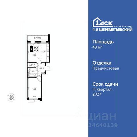 УСПЕЙ ПО СЕМЕЙНОЙ ИПОТЕКЕ БЕЗ НАЦЕНКИ! Квартиры в готовом квартале от 30 000 рублей в месяц! Прямая продажа от застройщика! Жилой Комплекс класса Комфорт Плюс. Продаётся 2-к квартира номер 275 общей площадью 49.7 кв.м. на 8-м этаже 17 этажного здания. Без отделки. Особенности квартиры: - Мастер-зона с гардеробной. Просторное место для отдыха и удобного хранения вещей. - Просторная спальня, в которой можно разместить большую кровать. - Линейная планировка - максимальная функциональность и удобство. - Увеличенная ширина окна/окон - больше света и визуального простора. - Просторная ванная - место для расслабления и уединения. - Гостевой санузел - комфорт и удобство для ваших гостей. - Ниша под стиральную машину - удобство и экономия пространства. - Евроформат - просторное и удобное жилье с отличной планировкой. - Кухня-гостиная - идеальное пространство для встреч с близкими. - Возможность добавить спальное место - дополнительный комфорт для гостей. - Гардеробная - удобство для хранения и организации вещей. - Ниша под шкаф - компактное и удобное место для вещей. - Балкон - открытое пространство для отдыха. Информация о комплексе: ЖК 1-й Шереметьевский расположен в самом центре Подрезково, от него всего 6 минут пешком до одноименной станции ж/д и планируемой к открытию МЦД-3. В комплексе яркие и уютные, лобби, большая колясочная, лапомойка. Благодаря гостевому санузлу на 1 этаже прогулки станут по-настоящему долгими. Два лифта пассажирский и грузовой.Во всех корпусах 1-го Шереметьевского там устроены кладовые, а в корпусах 3-5 есть подземный паркинг. В ЖК 1-й Шереметьевский разнообразие площадей и планировок. Большие кухни-гостиные: в них два окна или больше. Во всех квартирах площадью от 40 кв.м. и выше спроектировано 2 санузла. Большие остекленные лоджии с отделкой. Система Умная квартира, реализованная в 1-м Шереметьевском. В каждой квартире установлены датчики протечек и запорные вентили с электроприводом, которые самостоятельно перекрывают воду в случае аварии. Мобильное приложение управляет группами электропотребителей: даже если вы забыли утюг включенным, можно обесточить его дистанционно. Транспортная доступность: - Общественный транспорт: До ближайших станций метро Планерной и Войковской около 40-50 минут на автобусе. 6 минут до ЖД станции Подрезково (МЦД-3) - Личный автотранспорт: Удобный выезд на Ленинградское шоссе позволяет быстро добираться до МКАДа и в центр Москвы, до платной трассы М11 и в аэропорт Шереметьево. 3 минуты до Ленинградского ш. 10 минут до платной трассы М11 15 минут до МКАД 20 минут до ст. м Войковская 25 минут до ст. м Планерная Внутренняя инфраструктура: 1-й Шереметьевский не только сокращает время, которое вы будете проводить в дороге. Но и предпринимает многое, чтобы вы меньше ездили и чаще ходили. На первых этажах корпусов разместятся фрешмаркеты и пункты выдачи маркетплейсов, салоны красоты и химчистки, кофейни и пекарни всё, что необходимо изо Продается квартира в микрорайоне Подрезково в городе Химки.