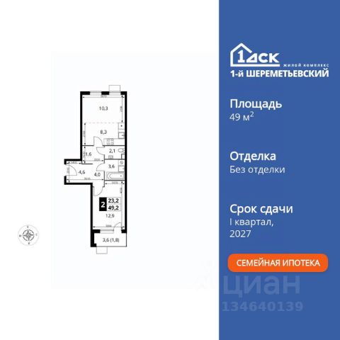 ДОПОЛНИТЕЛЬНАЯ СКИДКА ДО 10% В ОФИСЕ ПРОДАЖ! Прямая продажа от застройщика! Жилой Комплекс класса Комфорт Плюс. Продаётся 2-к квартира номер 476 общей площадью 47 кв.м. на 17-м этаже 17 этажного здания. Без отделки. Особенности квартиры: - Просторная спальня, в которой можно разместить большую кровать. - Распашная планировка - отличное сочетание удобства и свободы. - Раздельный санузел - больше удобства для всех членов семьи. - Евроформат - просторное и удобное жилье с отличной планировкой. - Гибкая планировка - создайте пространство по своему вкусу. - Увеличенная высота потолков - ощущение простора и легкости. - Можно оборудовать рабочее место - комфорт для работы и учёбы. - Кухня-гостиная - идеальное пространство для встреч с близкими. - Линейная кухня - функциональность и практичность в одном решении. - Лоджия - уютное место для отдыха и тишины. Информация о комплексе: ЖК 1-й Шереметьевский расположен в самом центре Подрезково, от него всего 6 минут пешком до одноименной станции ж/д и планируемой к открытию МЦД-3. В комплексе яркие и уютные, лобби, большая колясочная, лапомойка. Благодаря гостевому санузлу на 1 этаже прогулки станут по-настоящему долгими. Два лифта пассажирский и грузовой.Во всех корпусах 1-го Шереметьевского там устроены кладовые, а в корпусах 3-5 есть подземный паркинг. В ЖК 1-й Шереметьевский разнообразие площадей и планировок. Большие кухни-гостиные: в них два окна или больше. Во всех квартирах площадью от 40 кв.м. и выше спроектировано 2 санузла. Большие остекленные лоджии с отделкой. Система Умная квартира, реализованная в 1-м Шереметьевском. В каждой квартире установлены датчики протечек и запорные вентили с электроприводом, которые самостоятельно перекрывают воду в случае аварии. Мобильное приложение управляет группами электропотребителей: даже если вы забыли утюг включенным, можно обесточить его дистанционно. Транспортная доступность: - Общественный транспорт: До ближайших станций метро Планерной и Войковской около 40-50 минут на автобусе. 6 минут до ЖД станции Подрезково (МЦД-3) - Личный автотранспорт: Удобный выезд на Ленинградское шоссе позволяет быстро добираться до МКАДа и в центр Москвы, до платной трассы М11 и в аэропорт Шереметьево. 3 минуты до Ленинградского ш. 10 минут до платной трассы М11 15 минут до МКАД 20 минут до ст. м Войковская 25 минут до ст. м Планерная Внутренняя инфраструктура: 1-й Шереметьевский не только сокращает время, которое вы будете проводить в дороге. Но и предпринимает многое, чтобы вы меньше ездили и чаще ходили. На первых этажах корпусов разместятся фрешмаркеты и пункты выдачи маркетплейсов, салоны красоты и химчистки, кофейни и пекарни всё, что необходимо изо дня в день, но не заслуживает отдельной поездки на машине или такси. В квартале будут построены собственные школа и детский сад. Школа рассчитана на 1100 учеников. В ней будут 25-метровый бассейн и просторный атриум, медиатека. Детский сад рассчитана на 400 мал