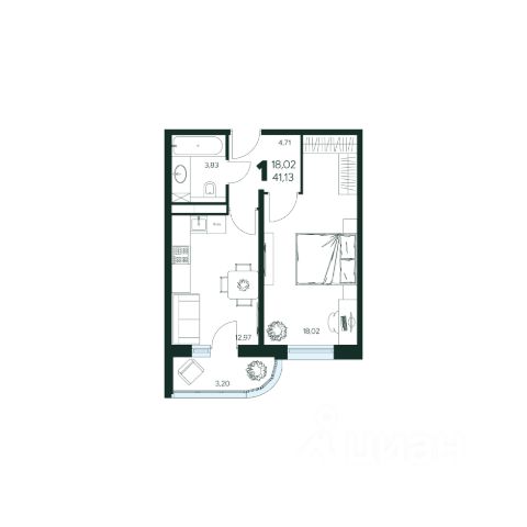 Квартира расположена на 8 этаже 17 этажного монолитно-кирпичного дома в современном ЖК Ивакино.